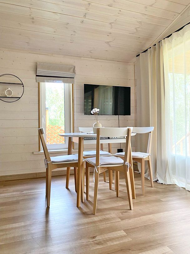 Каждый из гостевых домов оформлен в уютном стиле, с уважением к природным материалам и гармонией с окружающим ландшафтом.