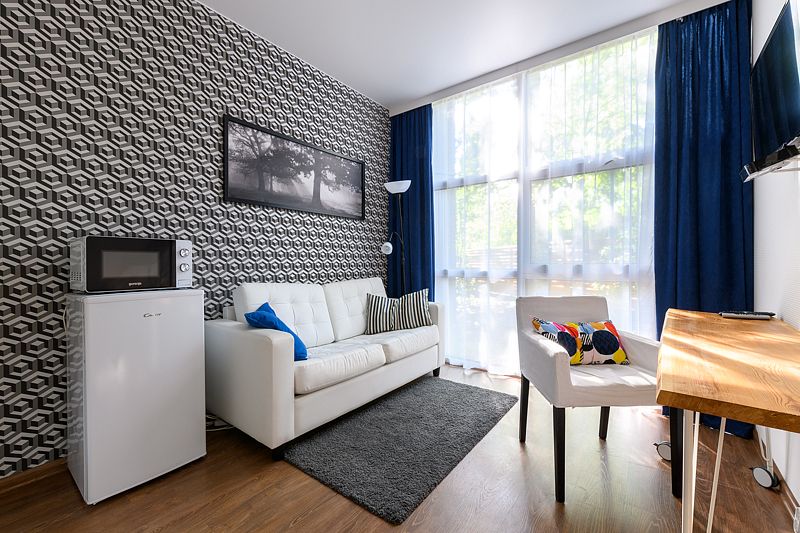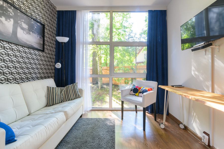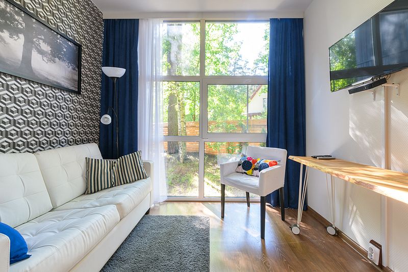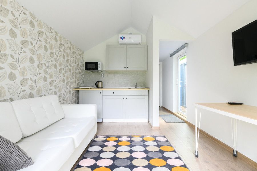Уютные апартаменты на 1 этаже в двухэтажных жилых модулях, построенных в стиле barn house. Каждому гостю предоставляется постельное белье и 2 полотенца. Смена белья и уборка — раз в неделю или по требованию за дополнительную плату.