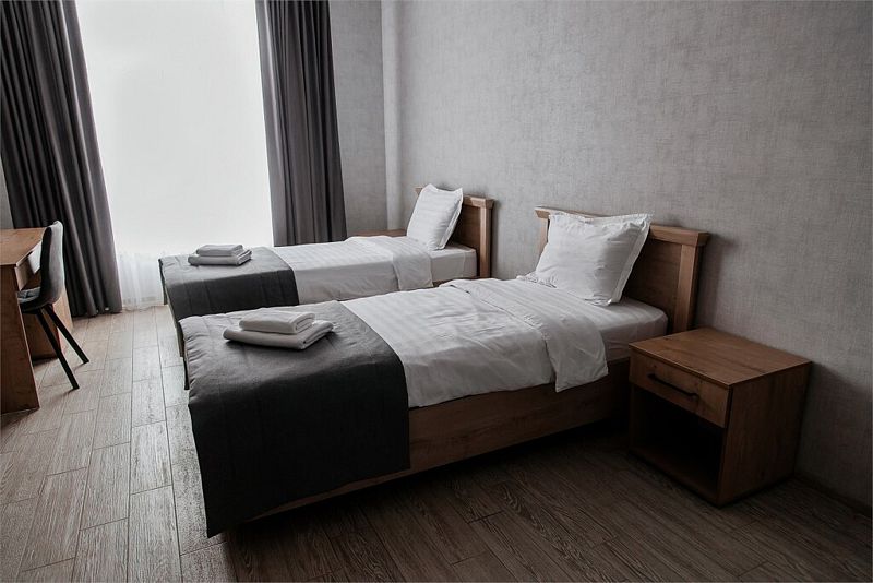 Эконом с двумя односпальными кроватями. Обычный двухместный номер, оформлен в современном стиле. Подходит для тех, кто стремится обеспечить комфортное проживание при минимальном бюджете. Номер обеспечен всем необходимым для длительного проживания.Услуги и удобства