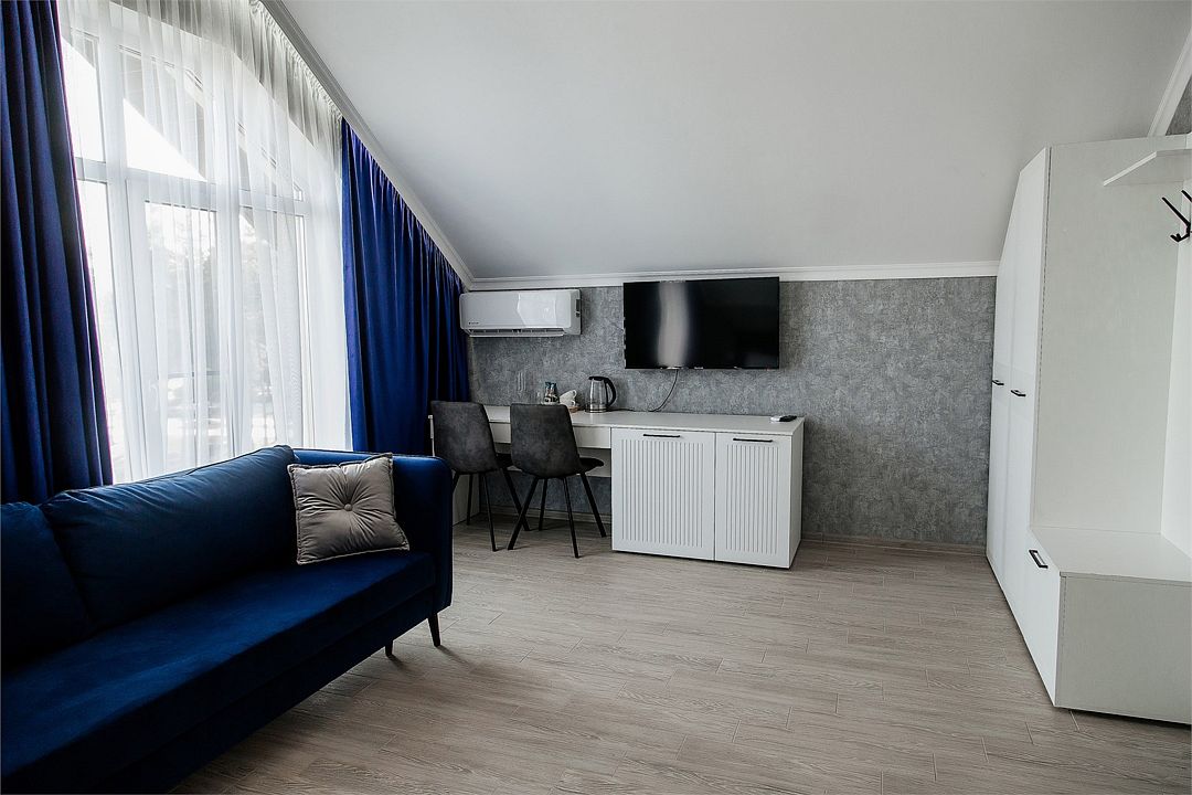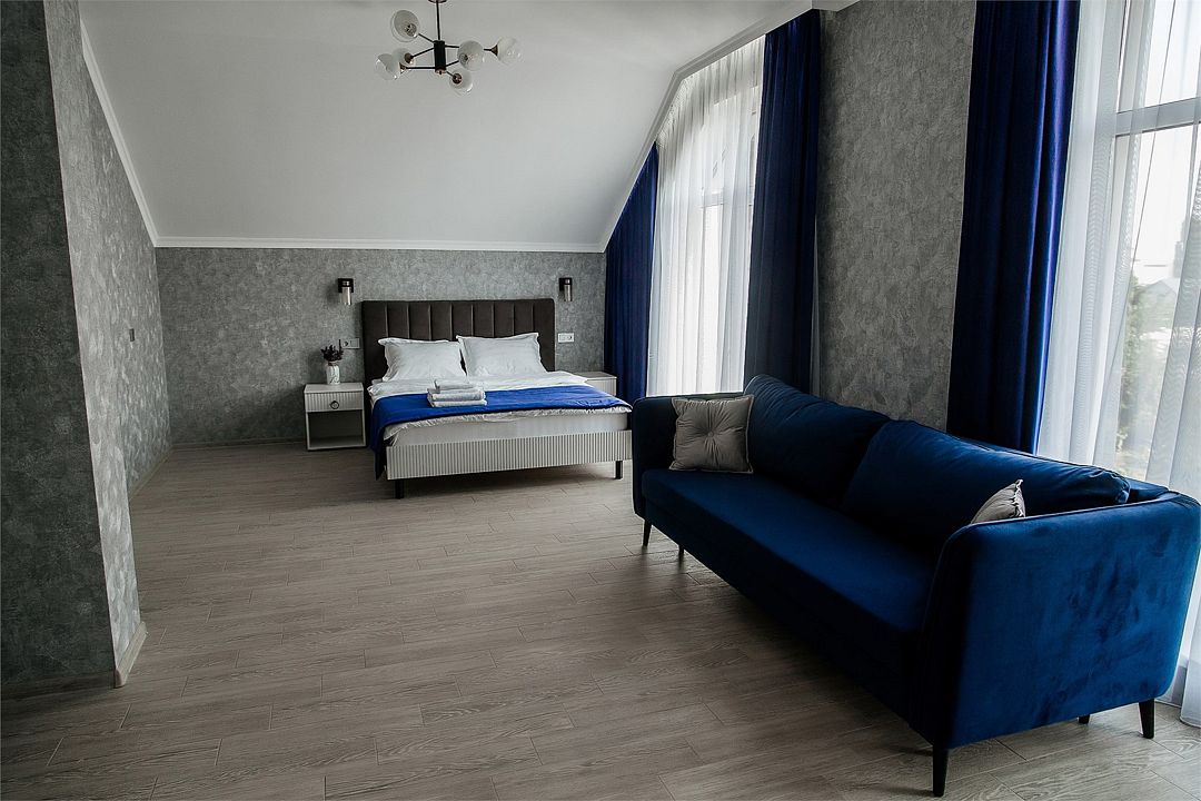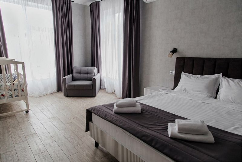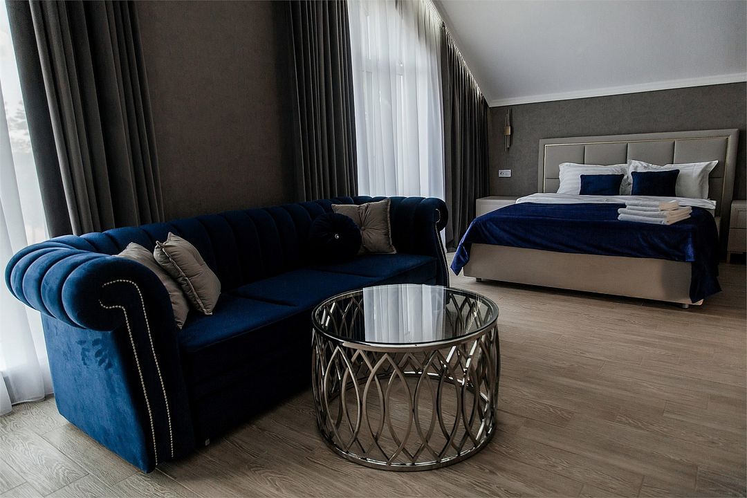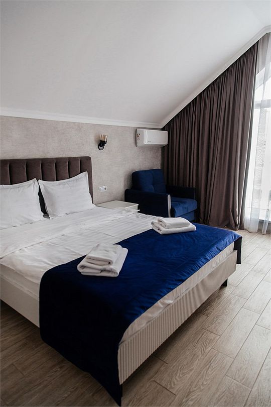 Люкс, оформлен в едином современном стиле, прекрасно подойдет для молодоженов, семейного размещения, а также для гостей,которые ценят свой статус и комфорт.Услуги и удобства