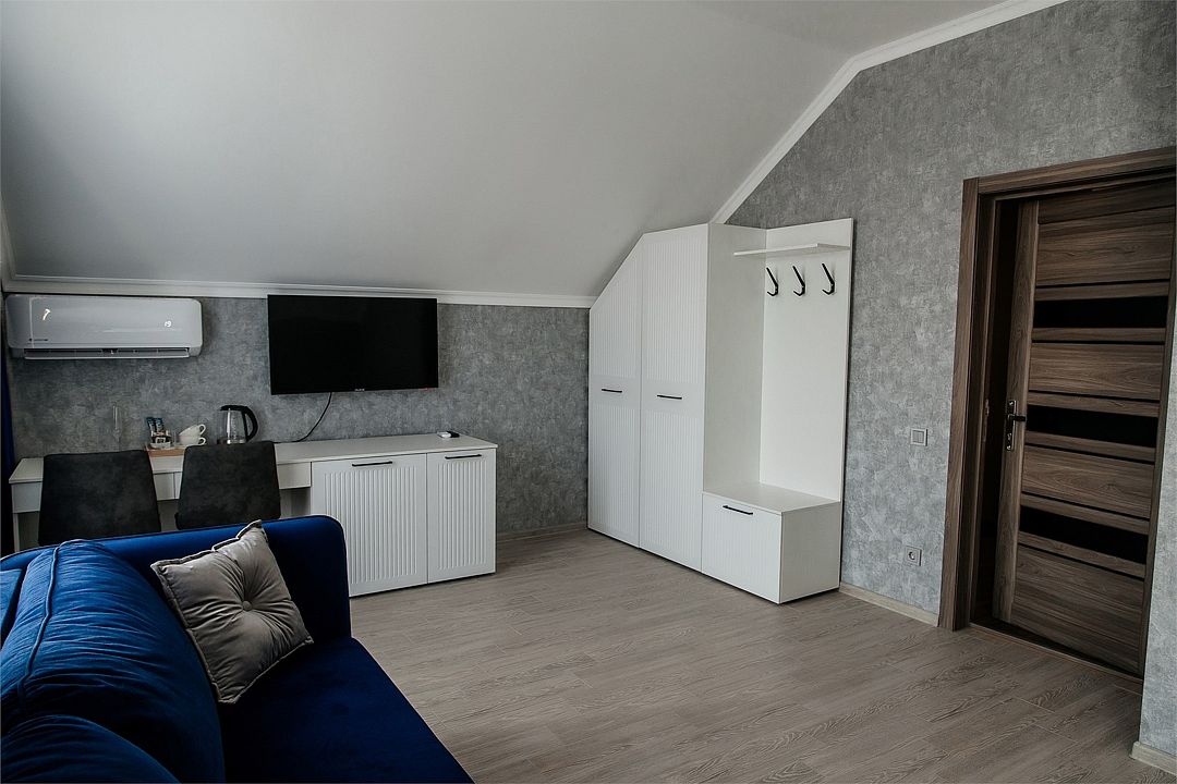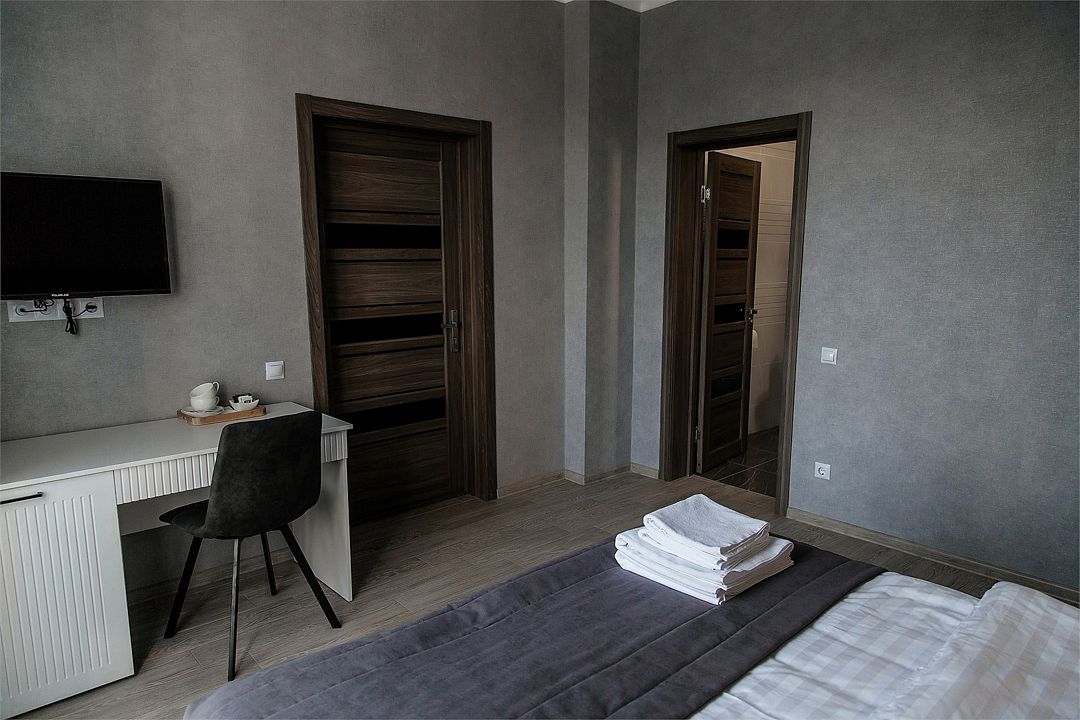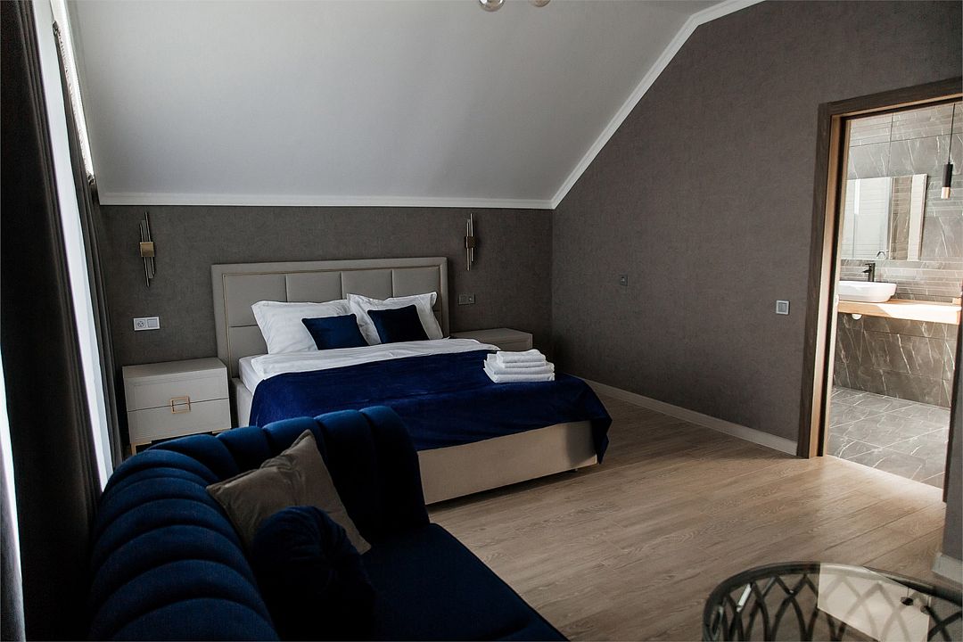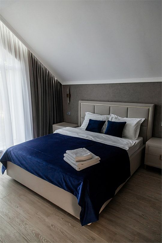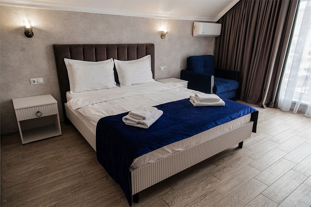 Люкс, оформлен в едином современном стиле, прекрасно подойдет для молодоженов, семейного размещения, а также для гостей,которые ценят свой статус и комфорт.Услуги и удобства