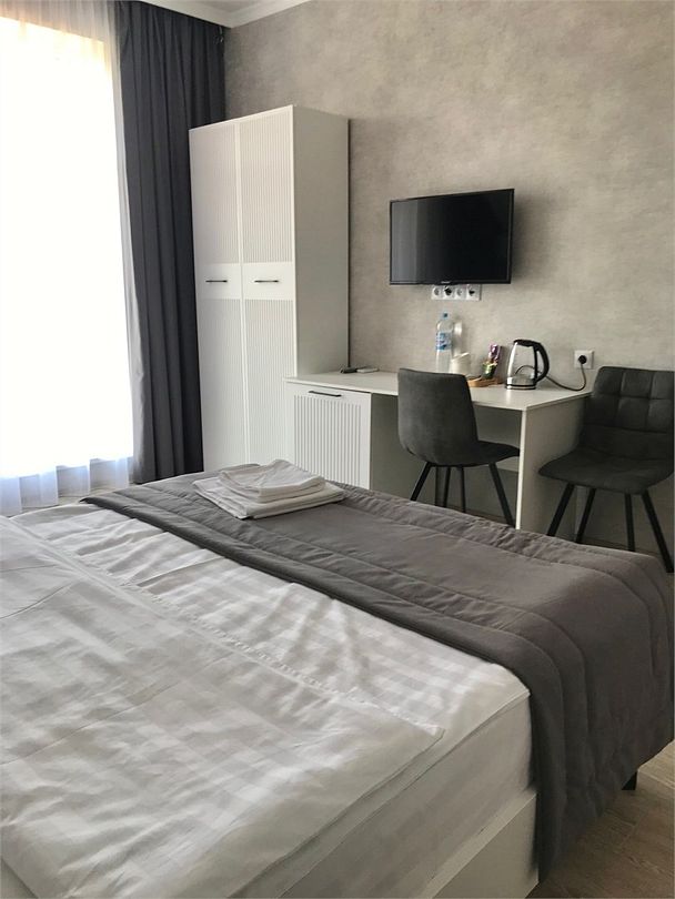 Однокомнатный стандарт. Уютный просторный номер с видом на город, выполненный в современном стиле, прекрасно подходит как для работы, так и для отдыха.Услуги и удобства