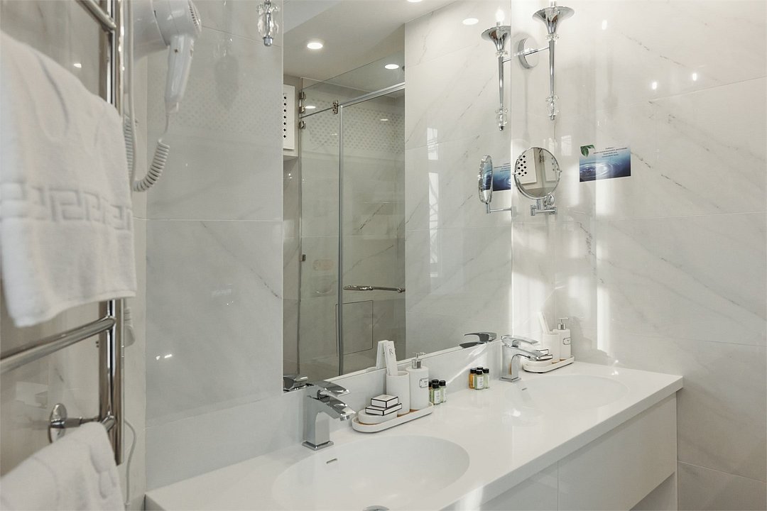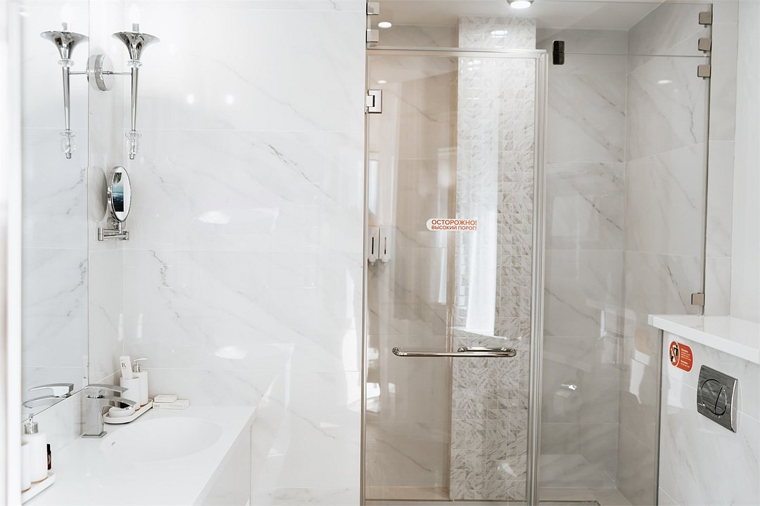 Suite – самый роскошный номер в отеле. Исключительное предложение для исключительных людей! Уникальной особенностью данного номера является ванная комната открытого типа, отсутствует входная дверь. Панорамные окна, превосходный вид на озеро Байкал, общая площадь 92 кв.м. отдельная обеденная и рабочая зона – все это будет Вашим. Здесь получаются удивительные фотографии, которые навсегда сохранят память о Вашем отдыхе. В апартаментах могут разместиться до 4х человек.Услуги и удобства