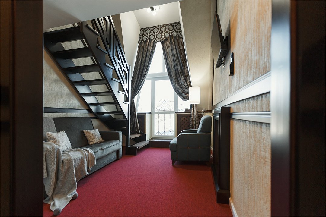 Superior - главная особенность номера в том, что он имеет два этажа! На первом этаже номера расположилась зона отдыха с диваном и TV. На втором этаже – спальная зона с мягкой кроватью «King-Size», все это многообразие сопровождается высокими потолками и превосходным видом на озеро Байкал! Если вы хотите удивить свою семью или друзей, то номер категории Superior однозначно для Вас! Площадь номера 26,5.Услуги и удобства