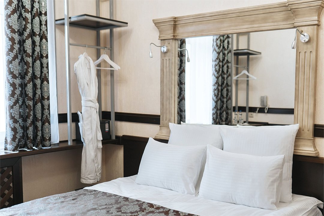 Junior Suite – это стандартный двухместный номер. В нем будет также комфортно, как и в номере более высокой категории за счет продуманной планировки, а двуспальная мягкая кровать «King-Size» позволит выспаться даже после дальней поездки! Площадь номера 16 кв.м. Гость отеля может выбрать номер с видом на парк аттракционов или же на поселок Листвянка, в обоих случаях из номера будет открываться вид на озеро Байкал.Услуги и удобства