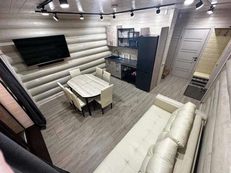 Дом полностью меблирован, оборудован холодильником, чайником, микроволновой печью и ТВ техникой, двуспальной кроватью и раскладным диваном, санузлом и тёплыми полами.