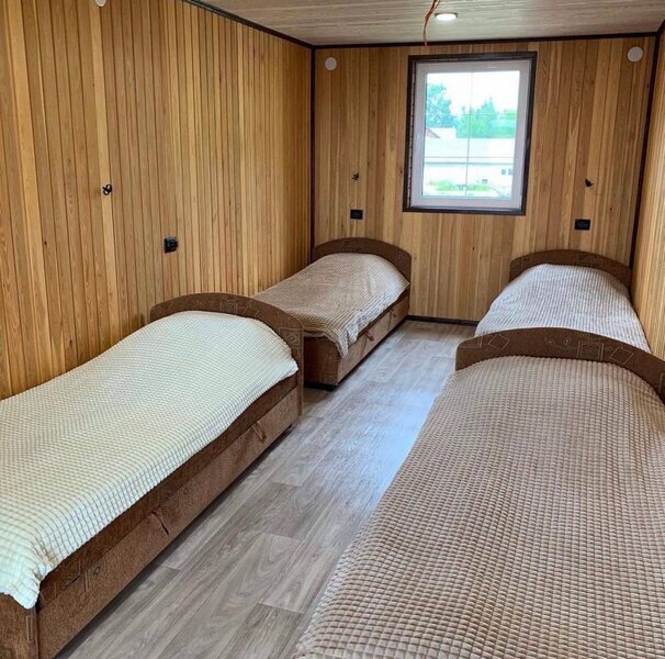 Комната 21 кв.м В четырёхместном номере предоставляется: •4 раздельных кровати •кухонные приборы (холодильник, чайник, микроволновка, телевизор(ТВ 20 каналов), посуда на 4 человека •4 комплекта постельного белья •4 полотенца •один санузел на два номераУслуги и удобства