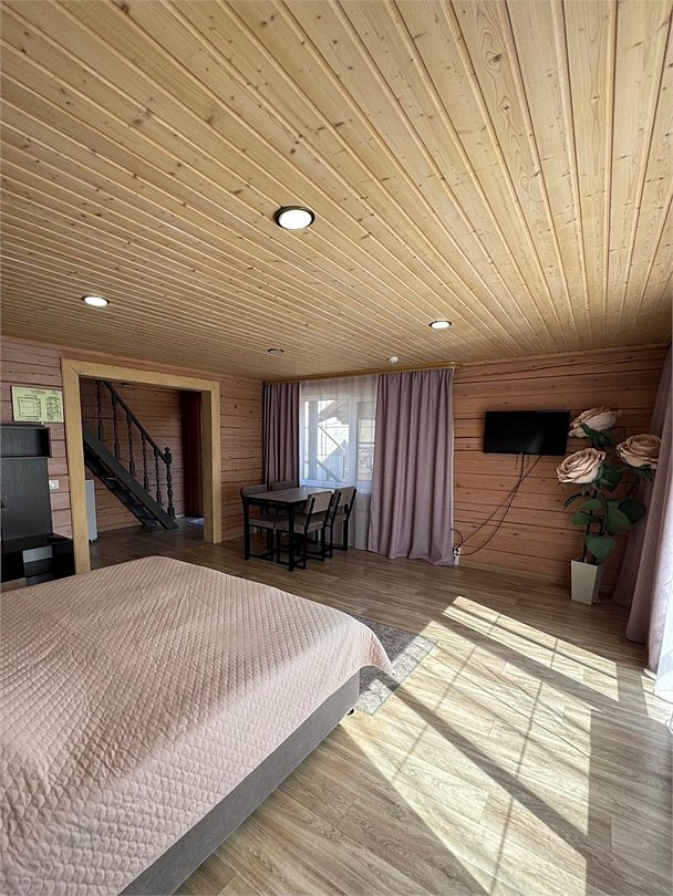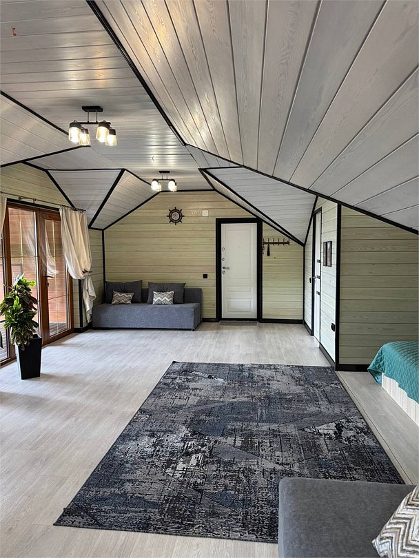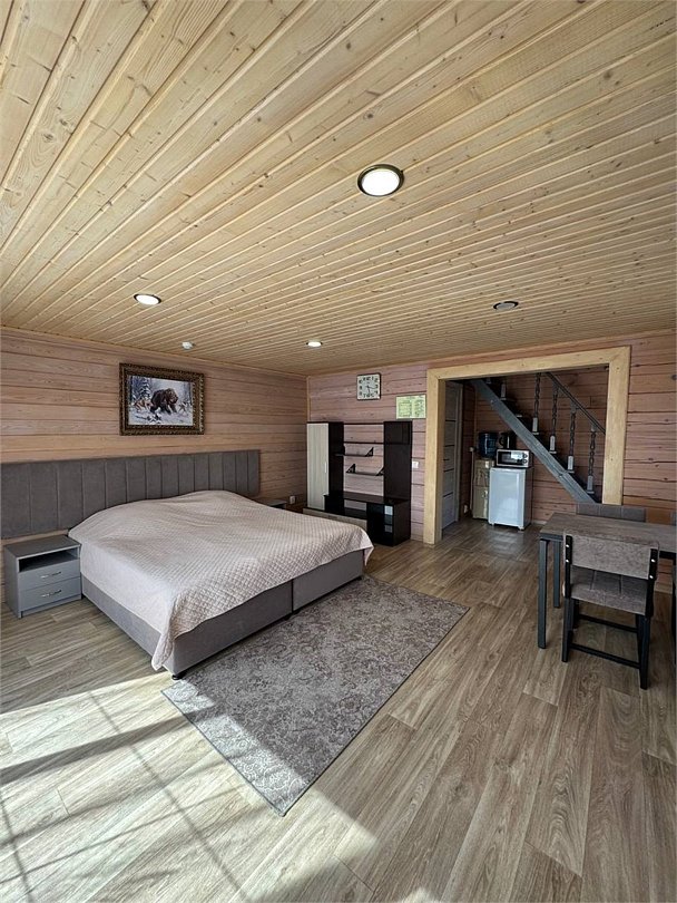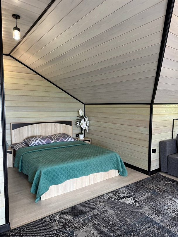 холодильник, плита для приготовления пищи, микроволновая печь, ванная комната, балкон, двуспальная кровать, стулья, обеденный стол, стол, панорамные окна, цифровое тв, диван-кровать, раскладной диван, телевизор с плоским экраном, вид на озеро, мансардные окна, морозильная камераВ номере
