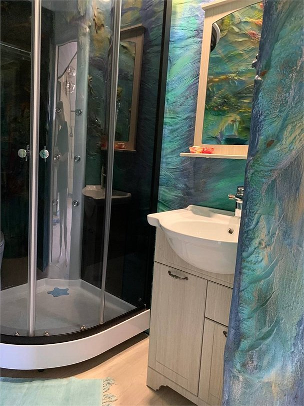 спутниковое телевидение, светильник, микроволновая печь, теплый пол, балкон, диван, тумбы, стулья, обеденный стол, зеркало, ковер, две комнаты, унитаз, душ, кулер на этаже, четыре односпальные кровати, стол, принадлежности для барбекю, панорамные окна, цифровое тв, диван-кровать, телевизор с плоским экраном, мини-холодильник, частичный вид на море, теплые полыВ номере