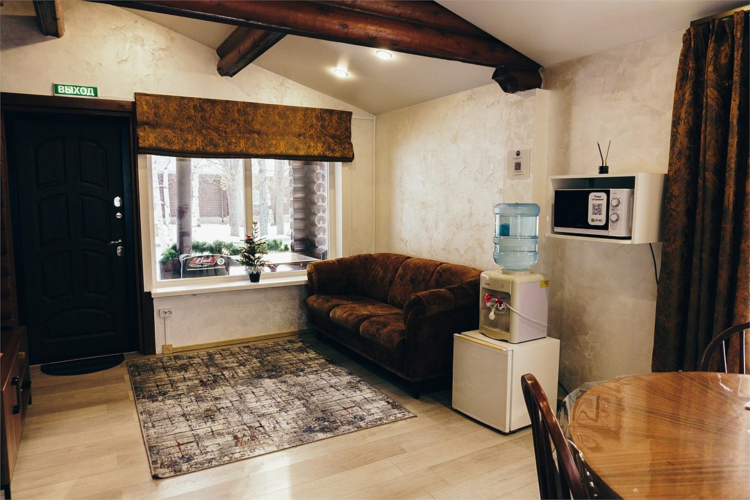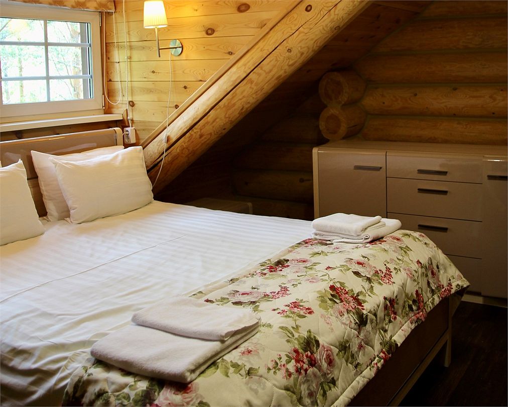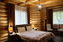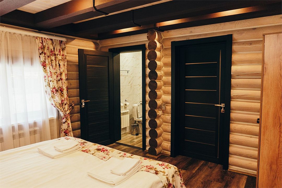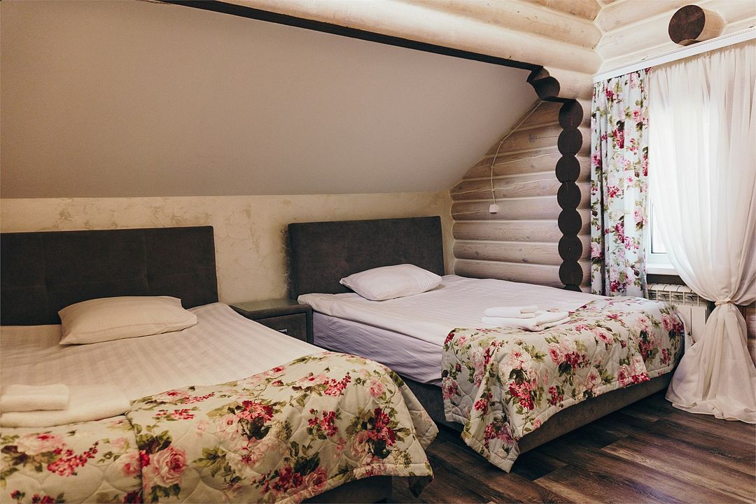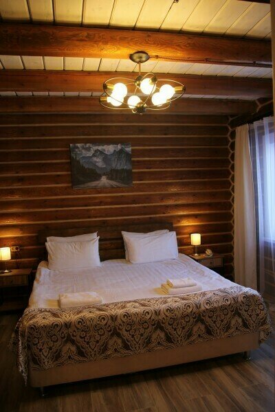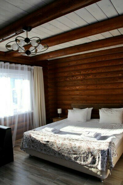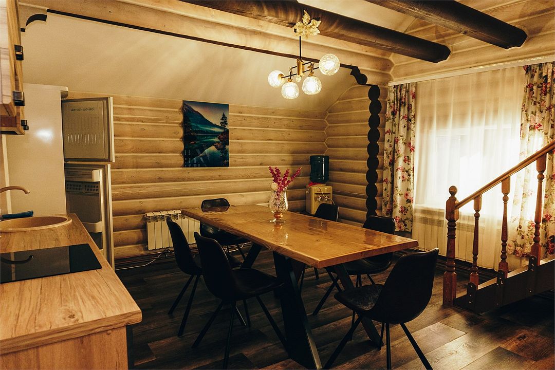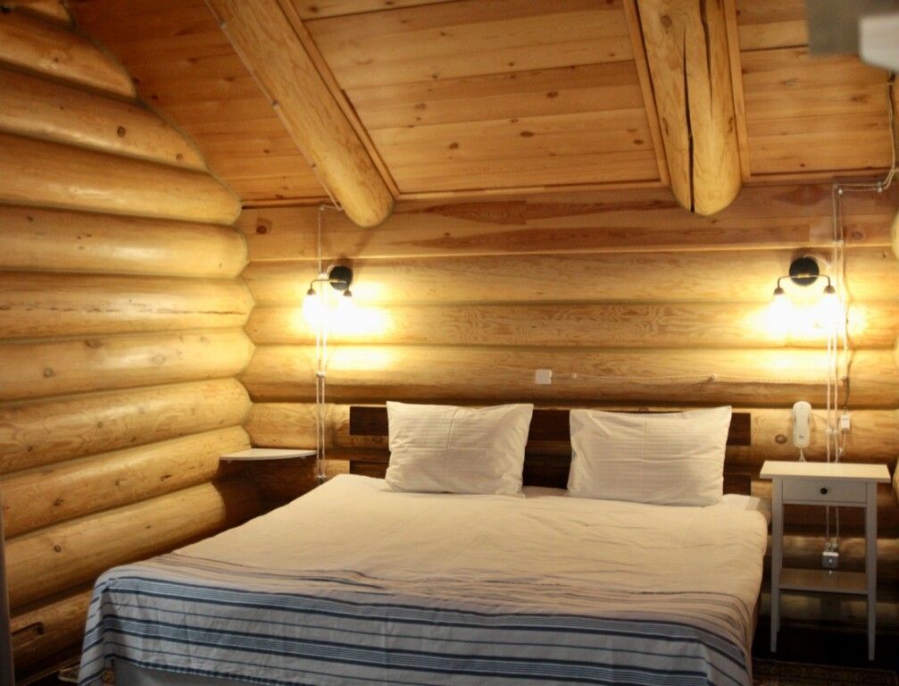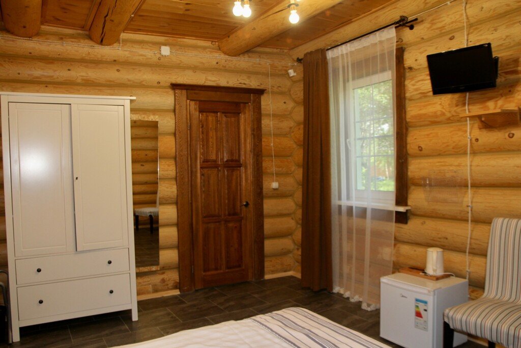 Весь номерной фонд выполнен из сибирской сосны в традициях русского деревянного дома. Гости могут разместиться как в стандартных номерах, так и арендовать коттедж.