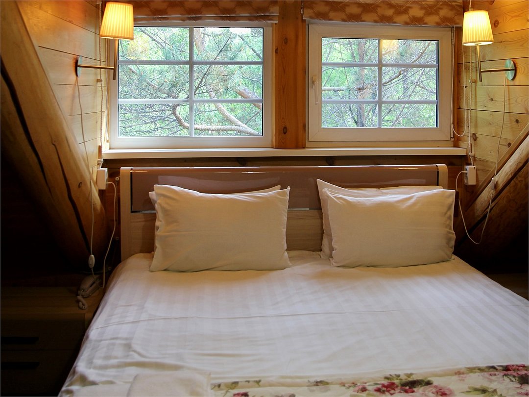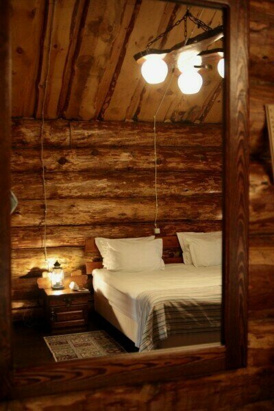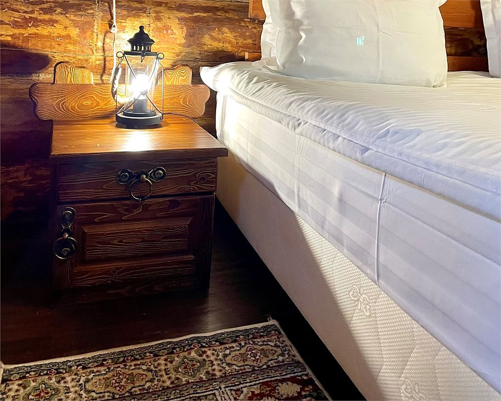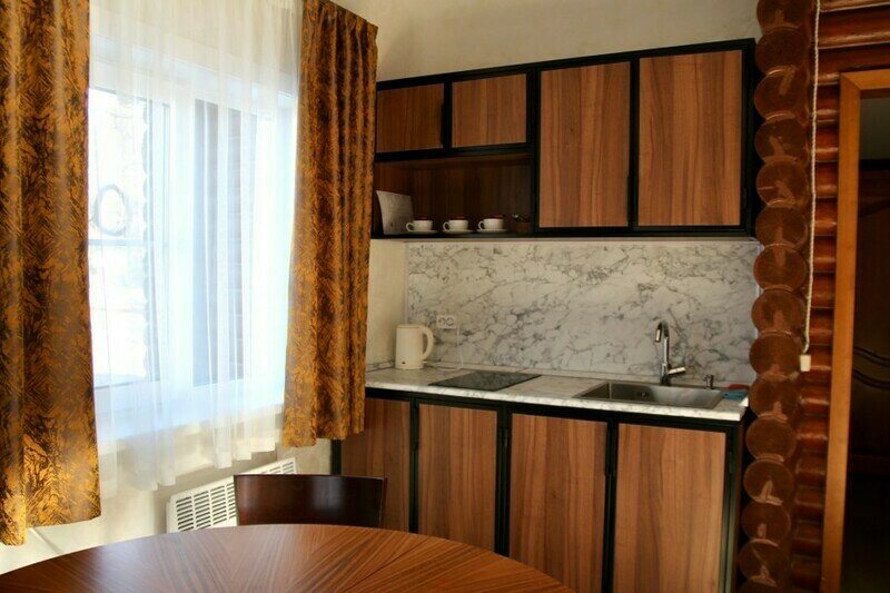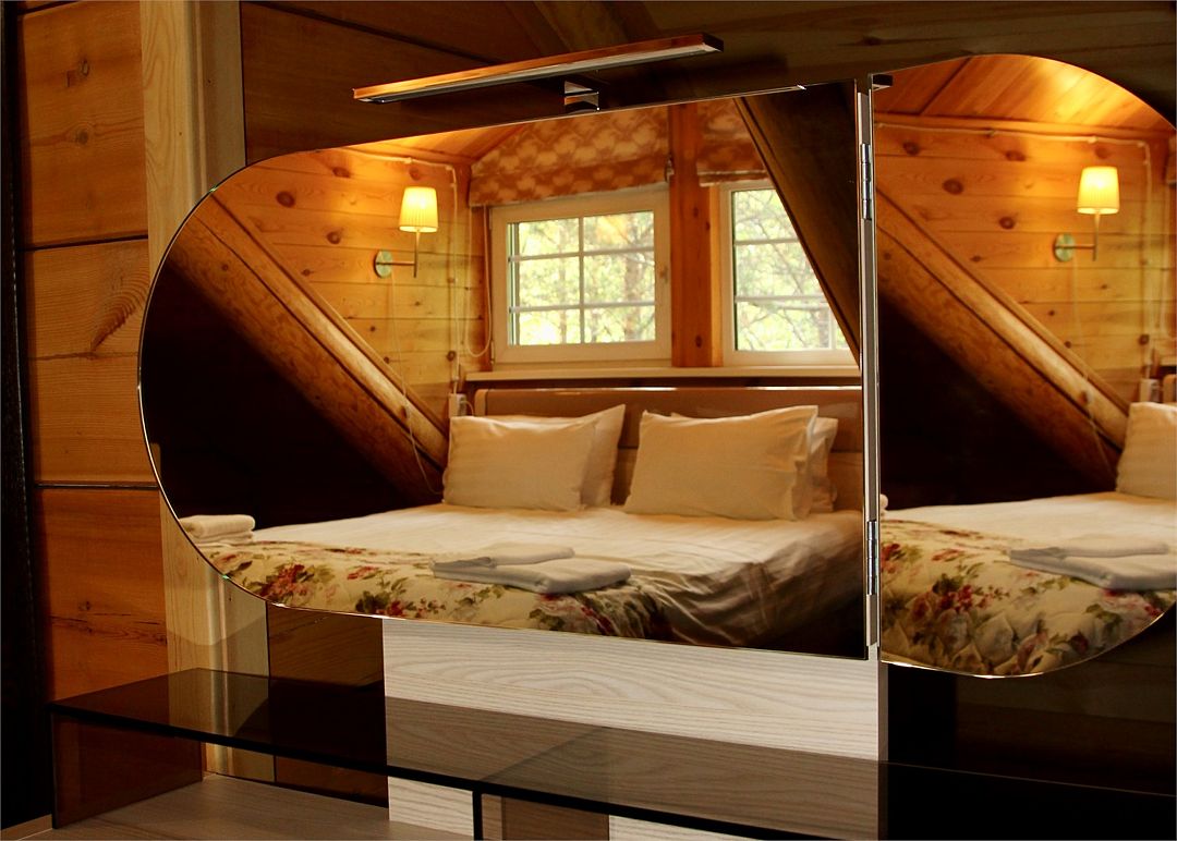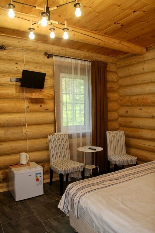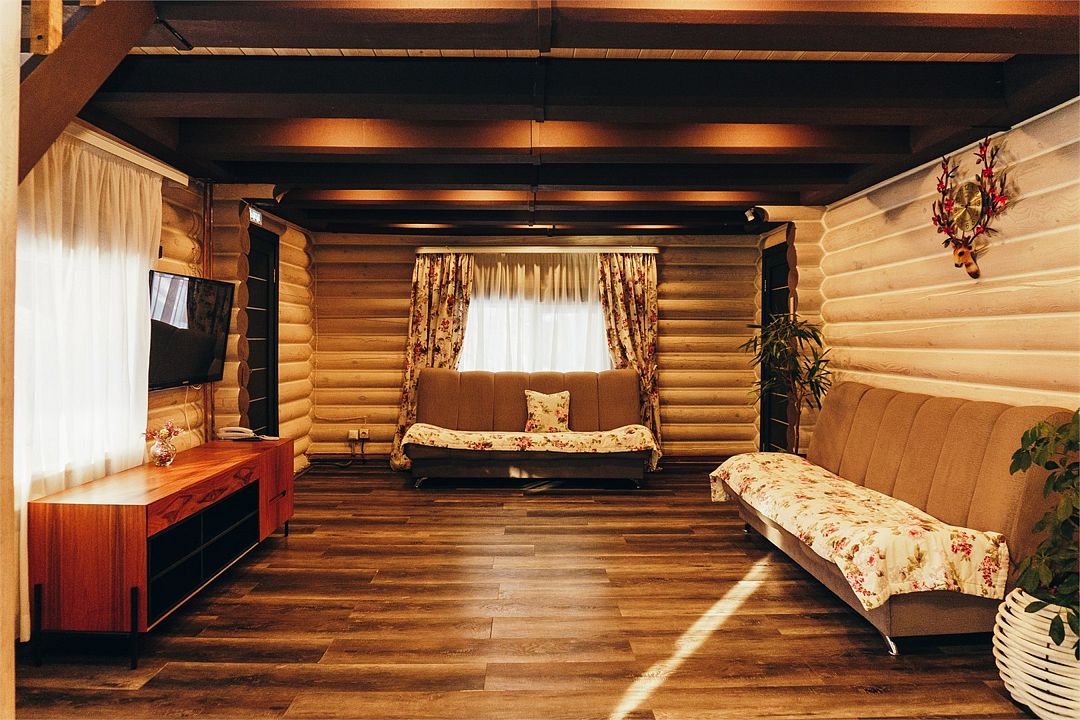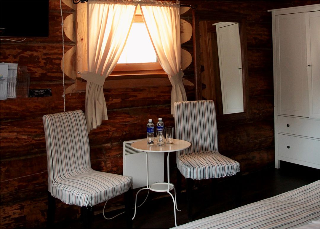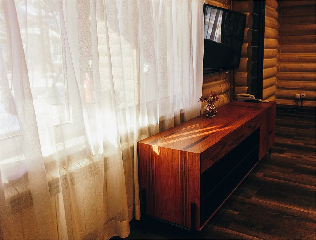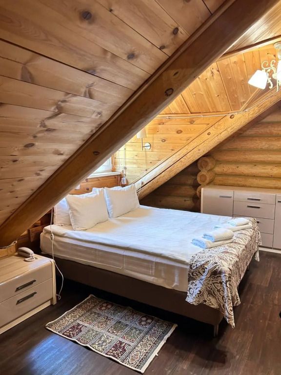 Весь номерной фонд выполнен из сибирской сосны в традициях русского деревянного дома. Гости могут разместиться как в стандартных номерах, так и арендовать коттедж.