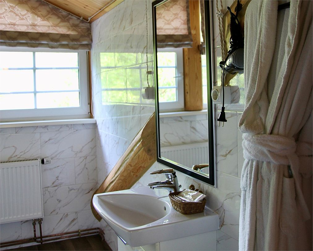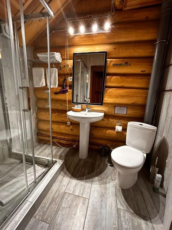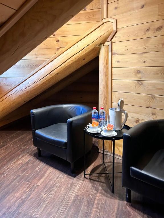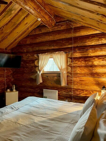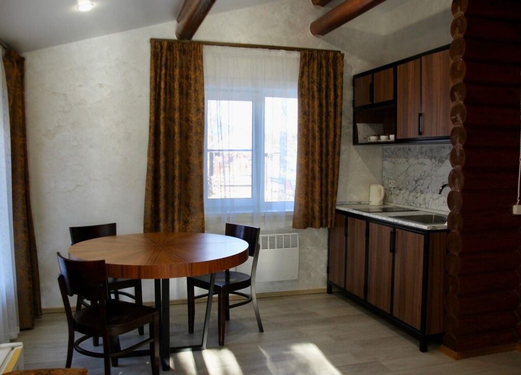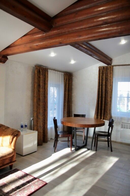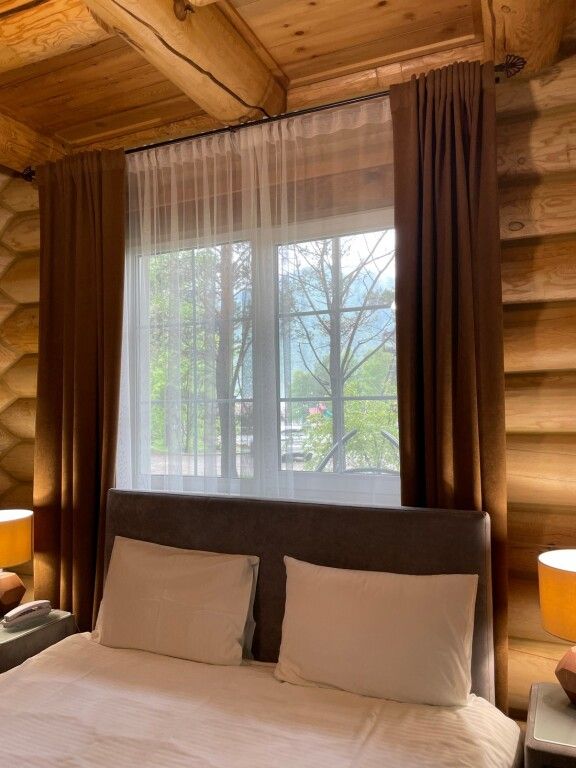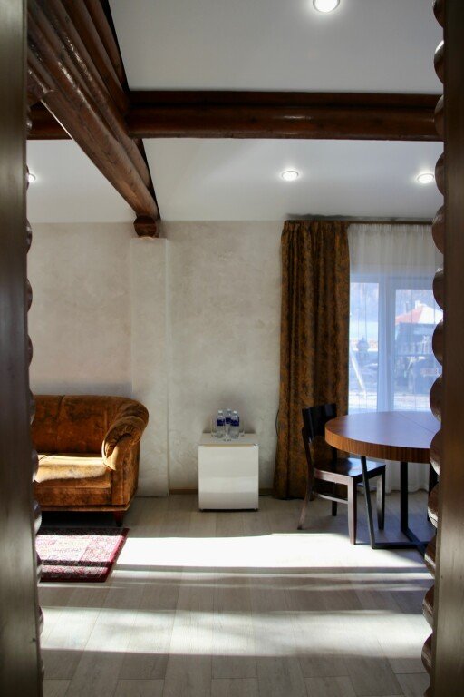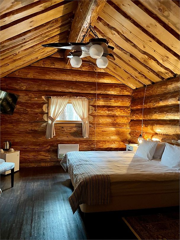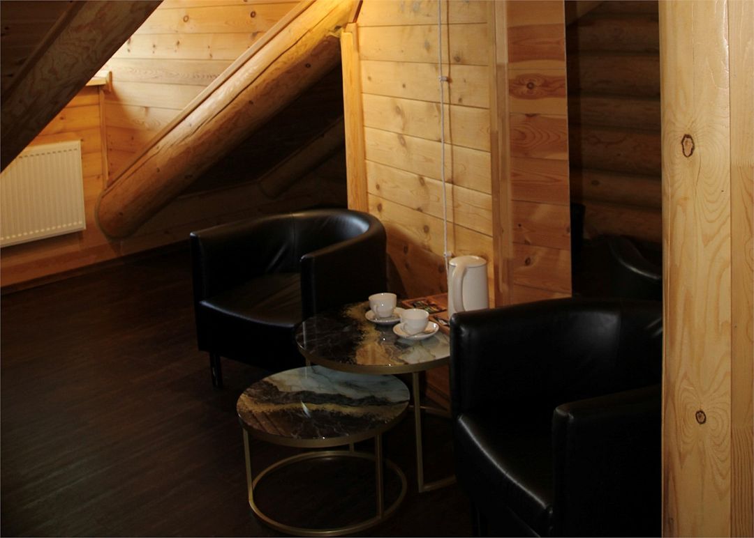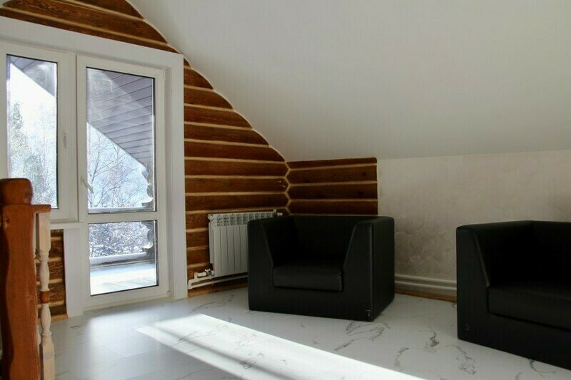 Весь номерной фонд выполнен из сибирской сосны в традициях русского деревянного дома. Гости могут разместиться как в стандартных номерах, так и арендовать коттедж.