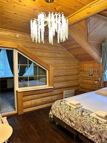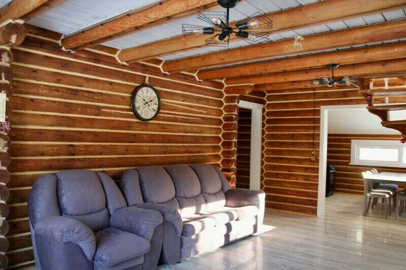Пятикомнатный коттедж из оцилиндрованного бревна с террасой. Прекрасный вариант для проведения дня рождения за городом в кругу друзей и близких!