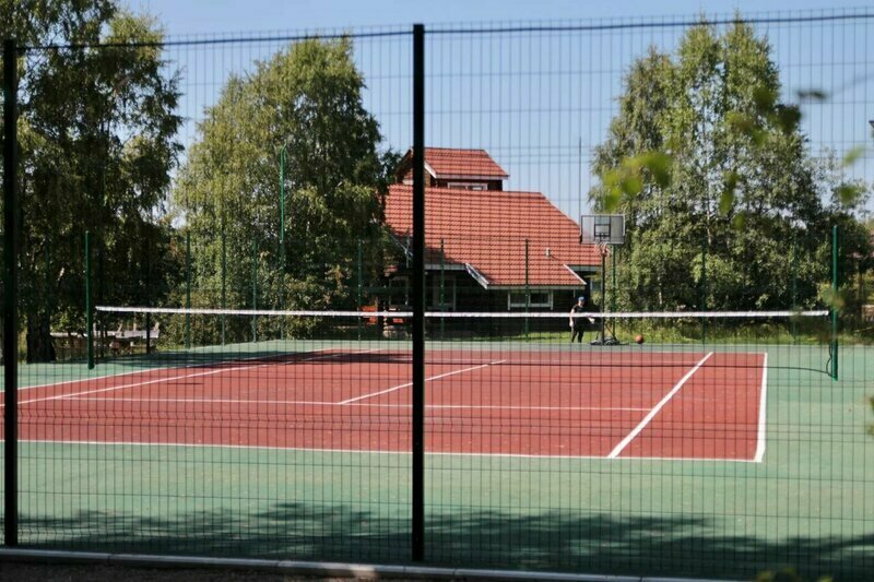 На территории парка-отеля также есть банный комплекс, состоящий из двух бань с купелью, детская площадка, теннисный корт и ресторан, в котором сотрудники отеля с радостью организуют для вас любое мероприятие, будь корпоратив, дни рождения и даже свадебные торжества. Красиво украшенный банкетный зал, территория и вкусная еда никого не оставят равнодушным.