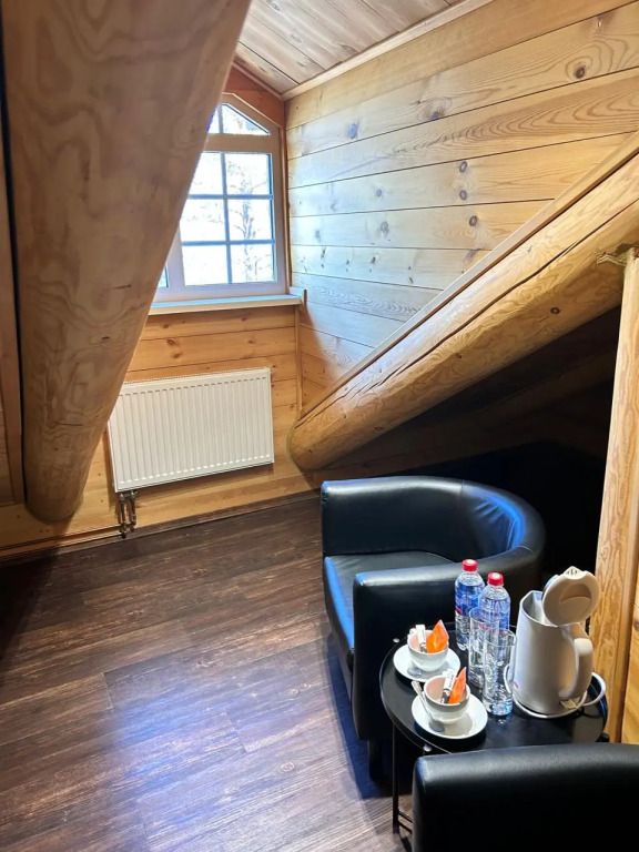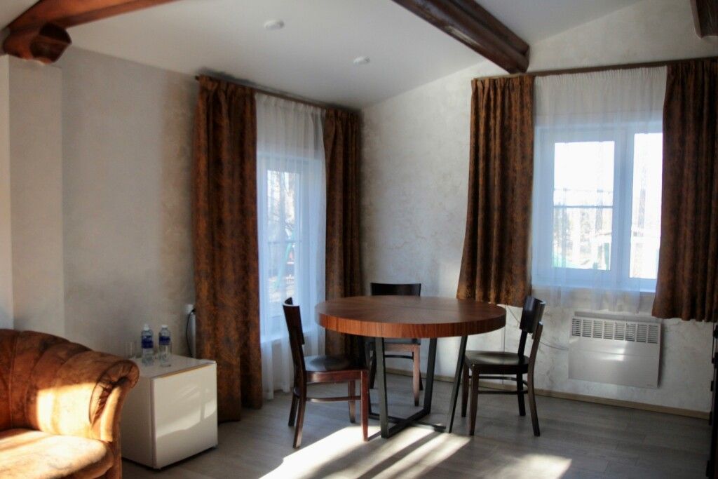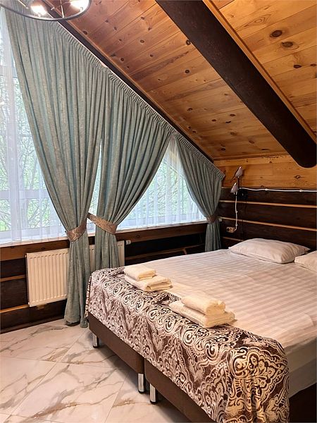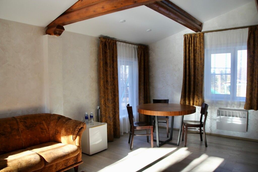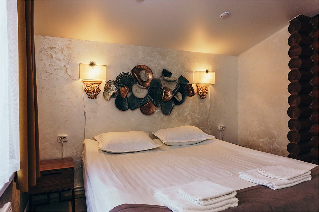 Двухкомнатный номер на мансардном этаже гостиничного корпуса. Необычная планировка, сводчатые потолки создают особую атмосферу романтики и шика.