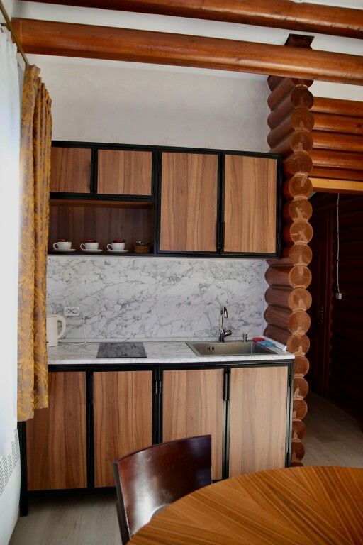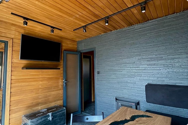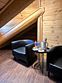 Для вас современная банная печь, парная, купель с подогревом воды на открытом воздухе, комната отдыха с эксклюзивным столом и мягким сиденьями, душ и туалет.