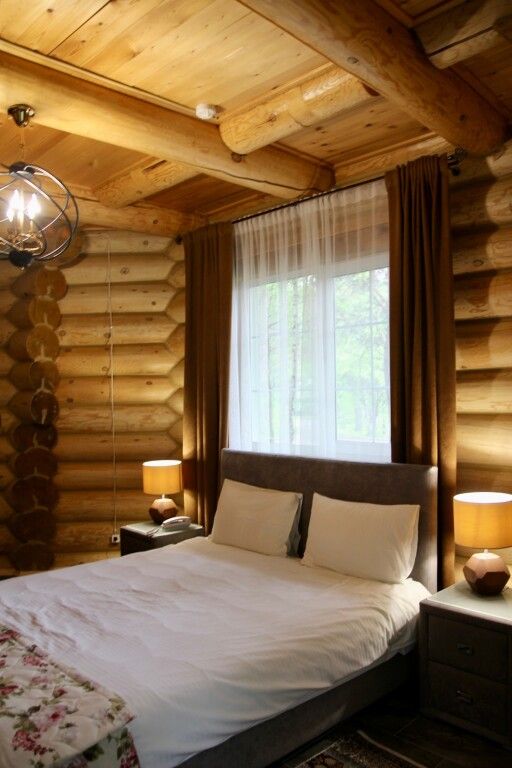 Трехкомнатный коттедж из оцилиндрованного бревна с террасой. Идеальный вариант для семейного отдыха, а также для небольшой компании.