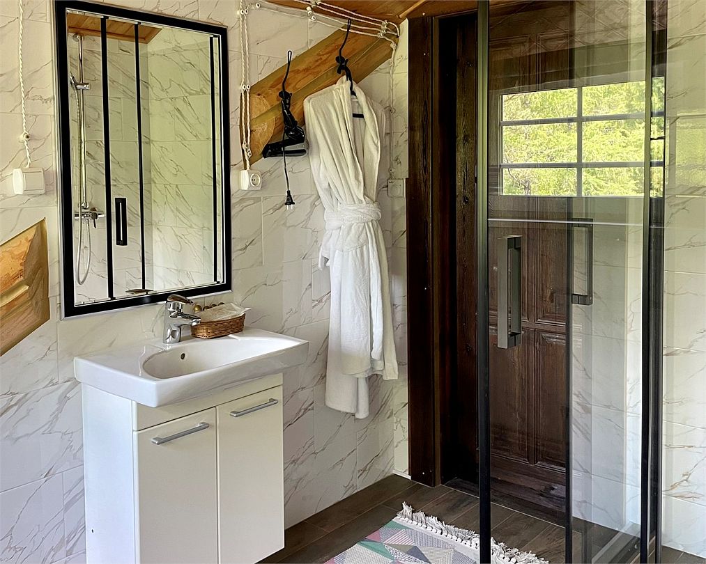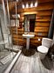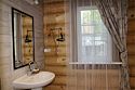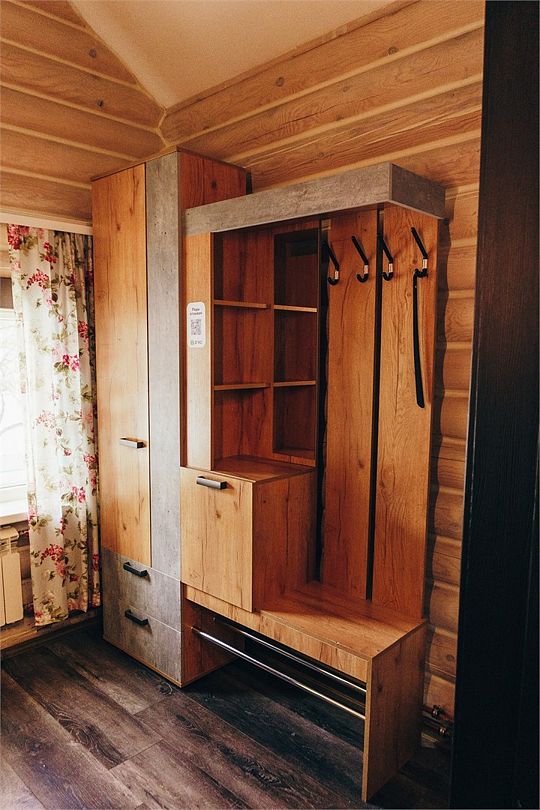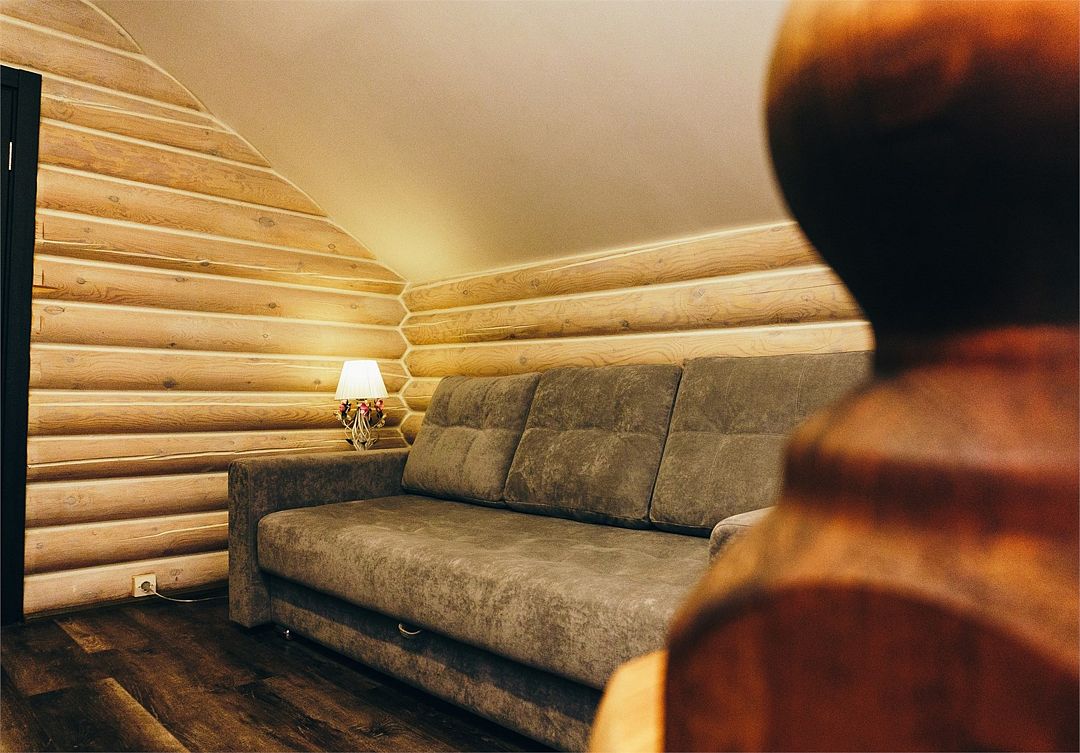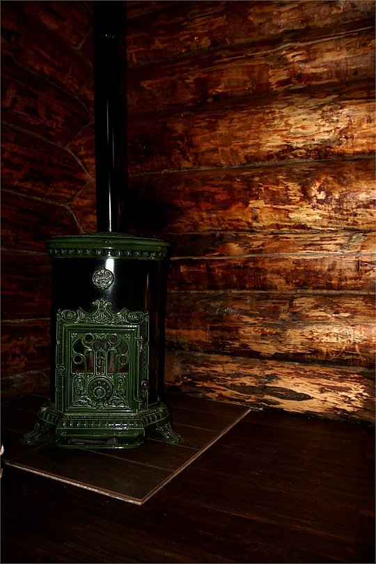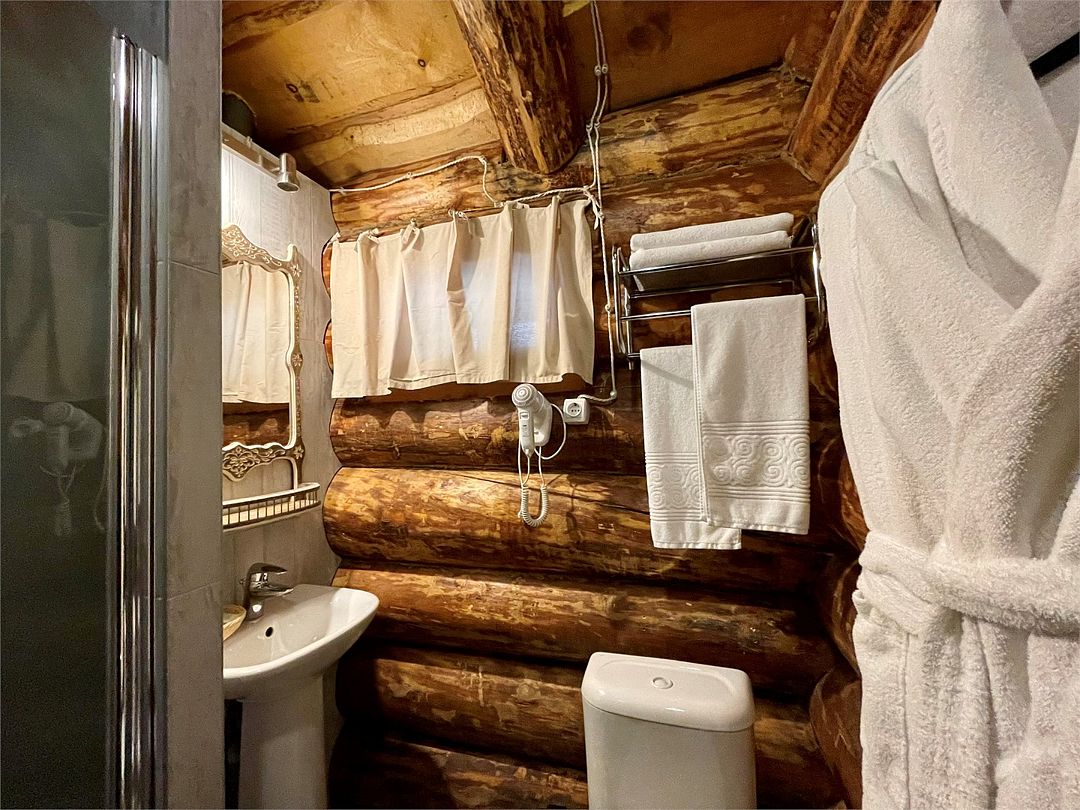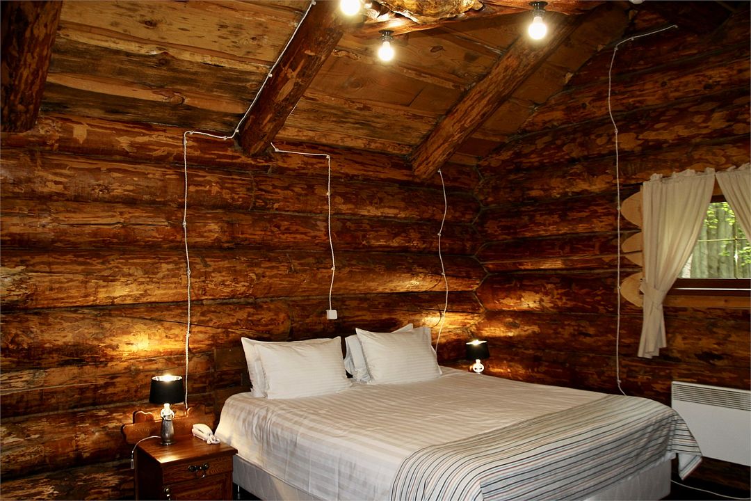 Двухместный рубленный дом в отдалении от основной территории, выполнен в стиле охотничьего зимовья. Неповторимый колорит вносит изящная французская печь-буржуйка.