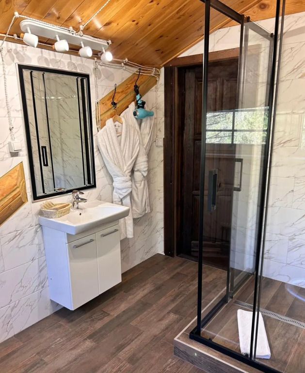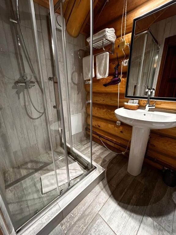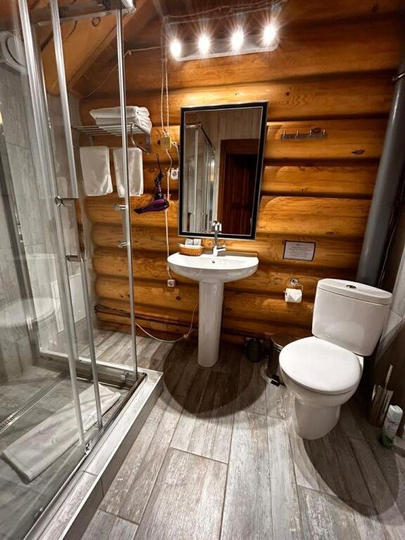 НедостаткиНомера не дешевые. Ресторан был арендован, обед и ужин можно заказать только в номер. Каток не готов, горка не работает. Баня стоит дорого, и заказать можно не менее двух часов. Мангальная зона одна и тоже платная. Номера тоже вызвали некоторые неудобства: холодно, полотенце сушители не работают.