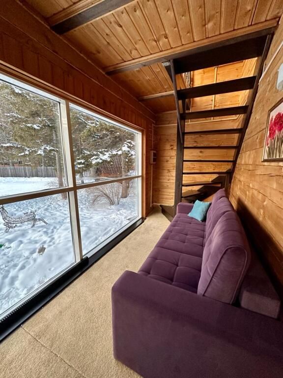 Шале «У Иваныча» с садом, сезонным открытым бассейном и видом на горы находится в поселке Листвянка.