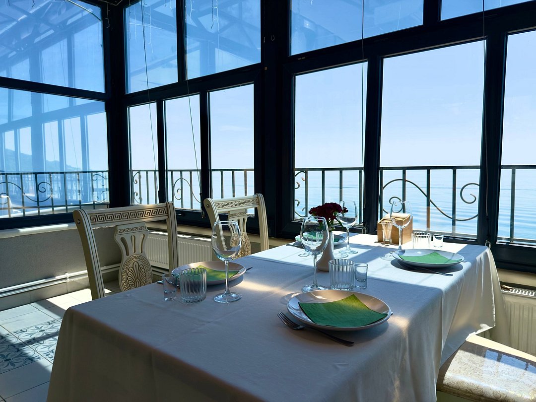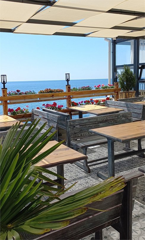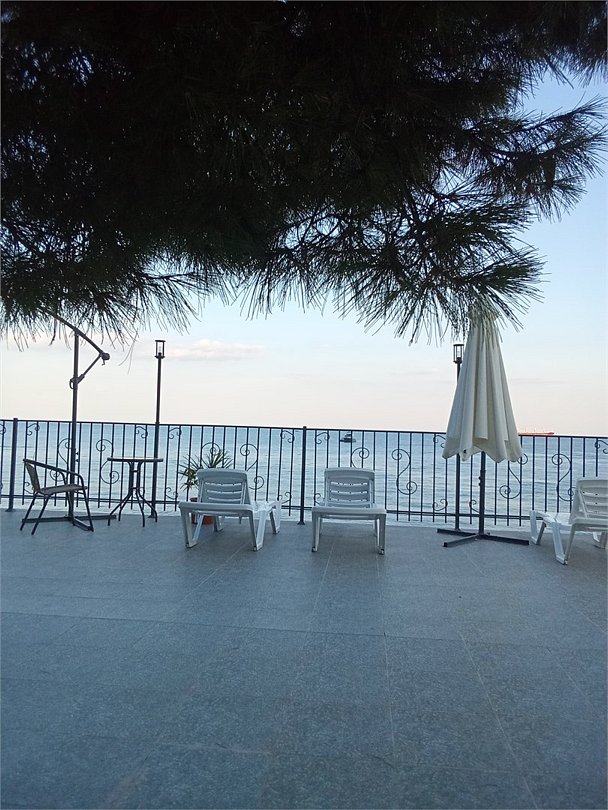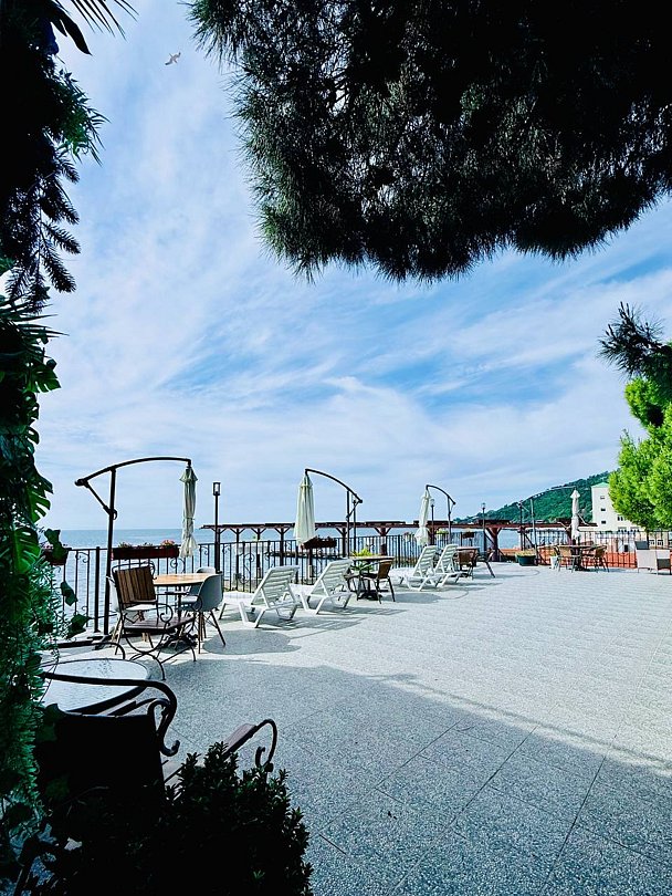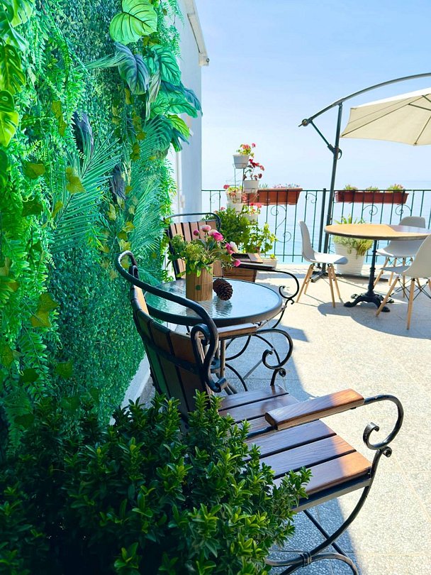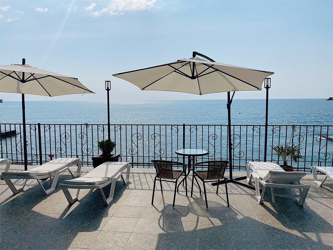 Просторная терраса позволит насладиться прекрасным видом на море и шумом прибоя.