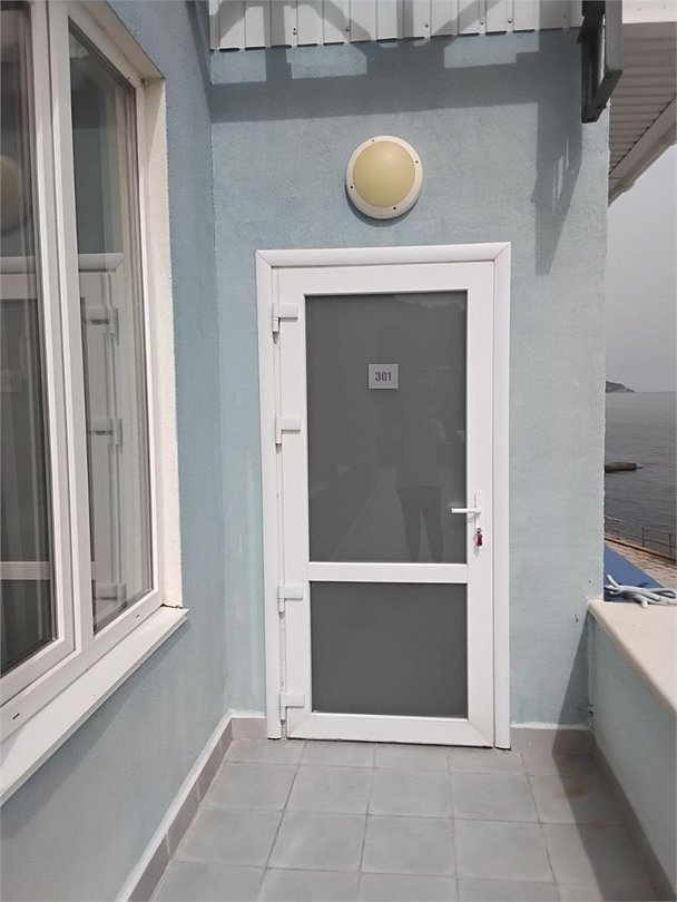 Однокомнатный 3-х местный номер с видом на море, 2-х спальная кровать с дополнительным местом -раскладным креслом.Услуги и удобства