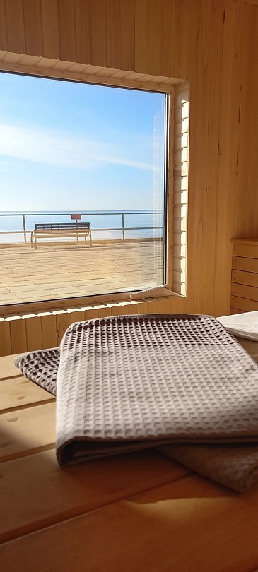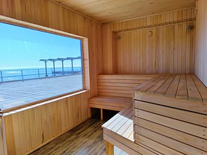 Уютная баня с панорамным видом на Чёрное море создаст атмосферу для идеального отдыха.