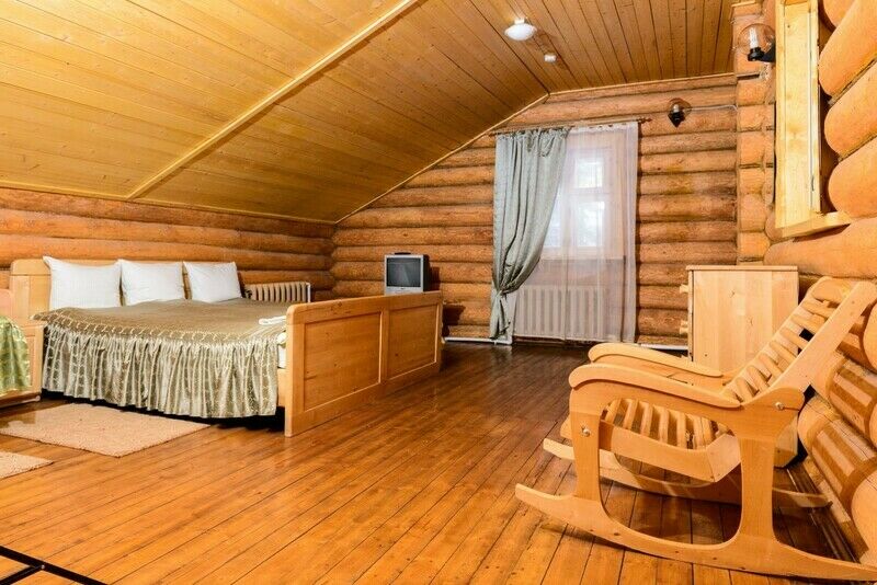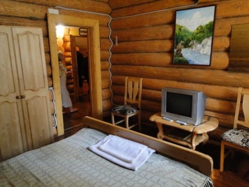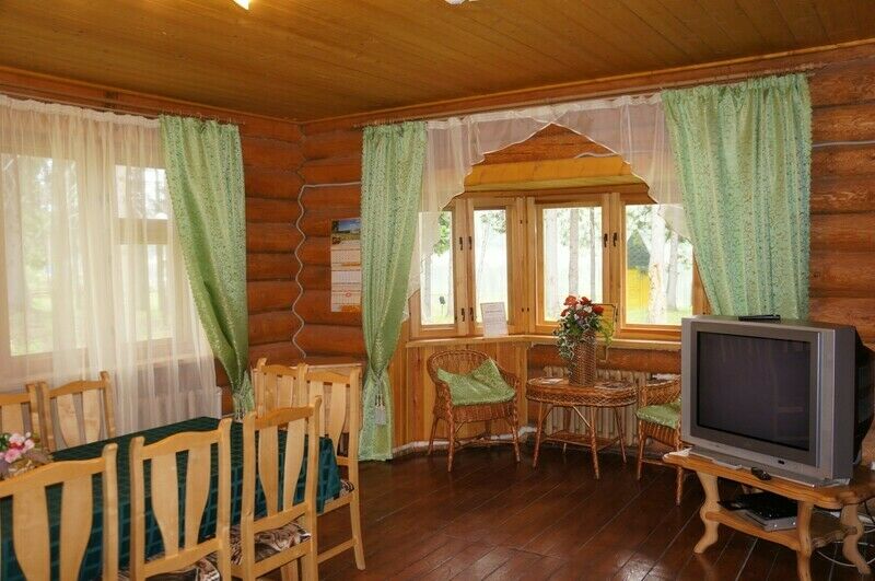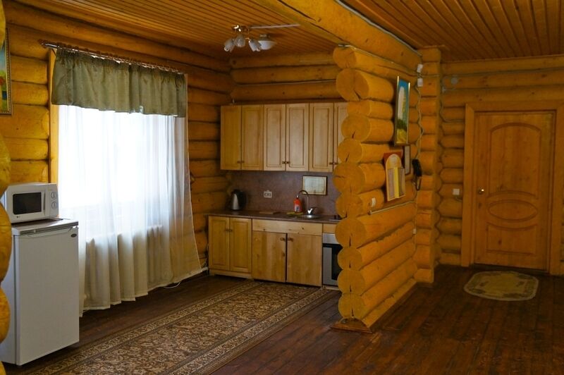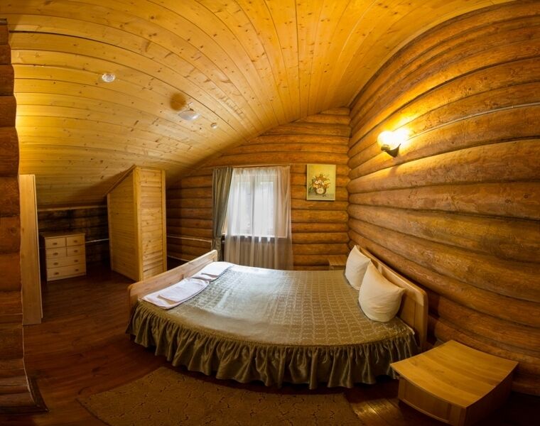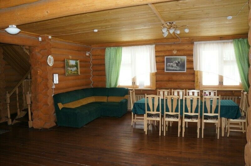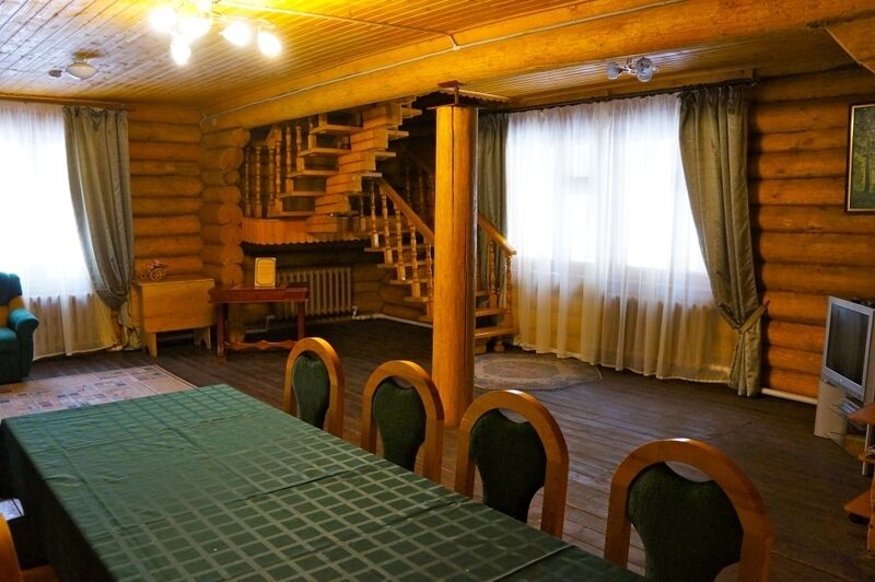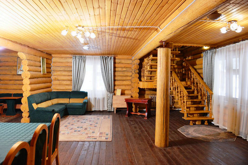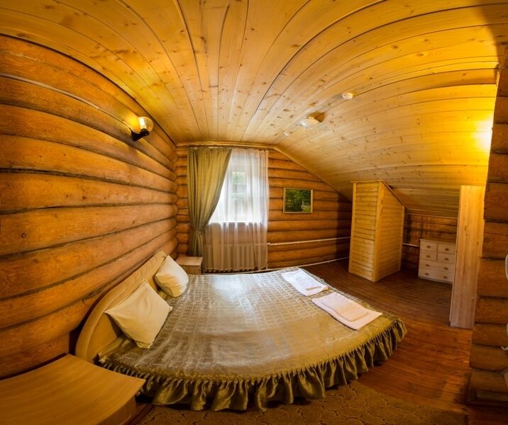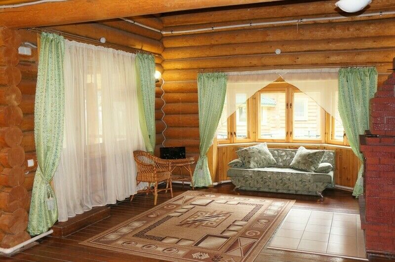 Коттедж из оцилиндрованного бревна, оставляет неизменной красоту натурального дерева. Количество спальных мест - десять