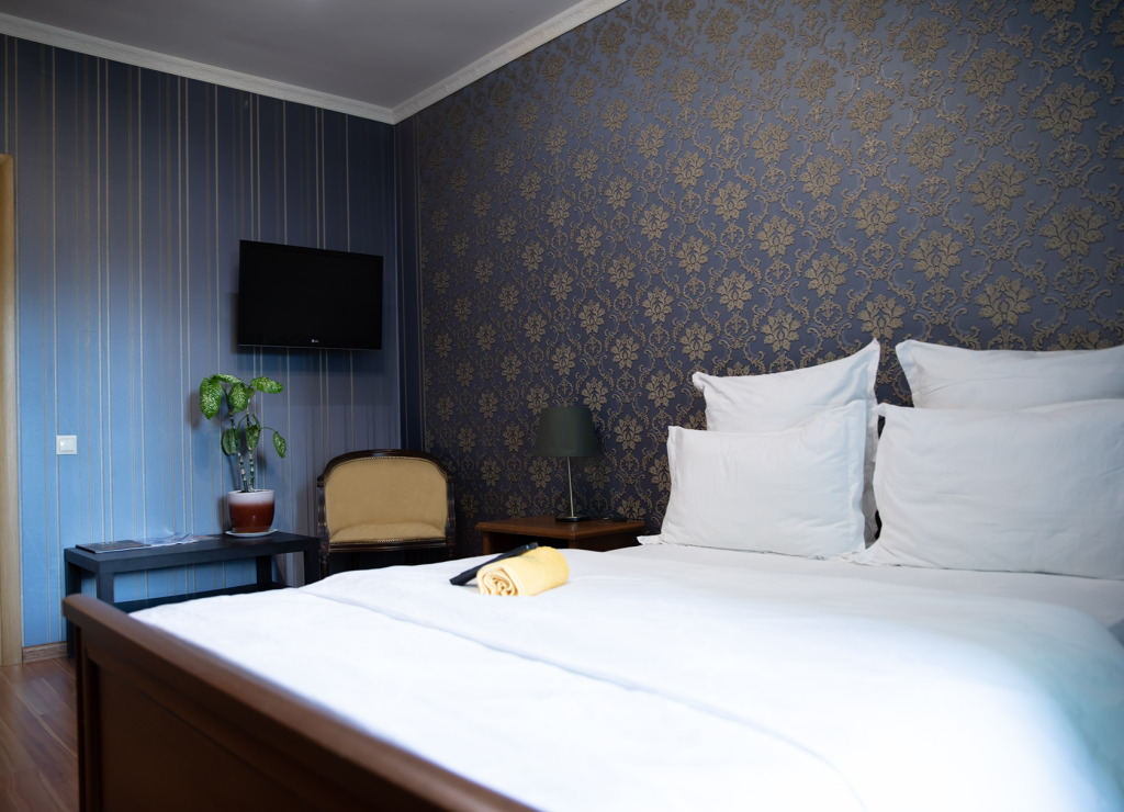Все номера оформлены в классическом стиле. Они оборудованы всем необходимым, что может понадобиться во время проживания, в каждом из них есть телевизор, собственная ванная комната, бесплатные косметические принадлежности, внутренние телефоны, Wi-Fi, а также в некоторых номерах установлен кондиционер.