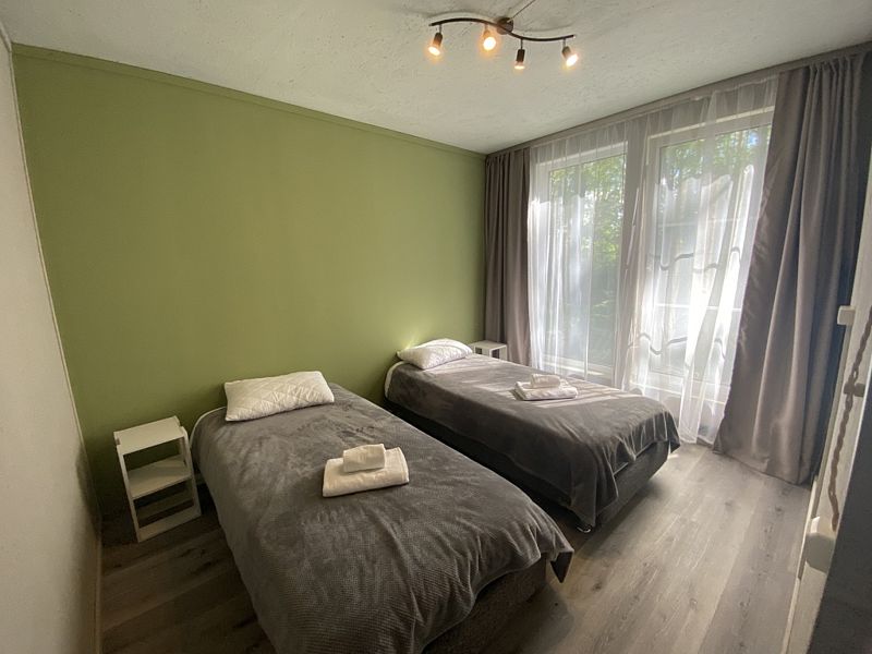 Номер для двоих с отдельными кроватями, есть выход на террасу с уличной мебелью.