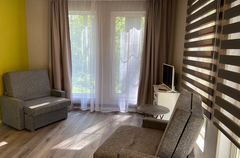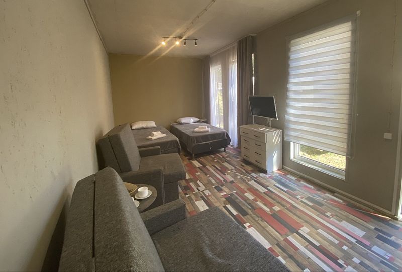 Номер со всеми удобствами ,есть отдельный выход на террасу с уличной мебелью.