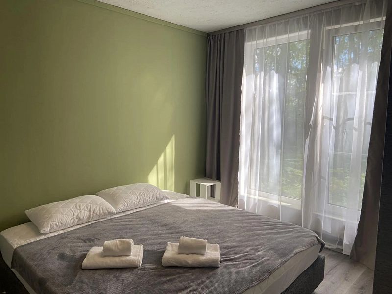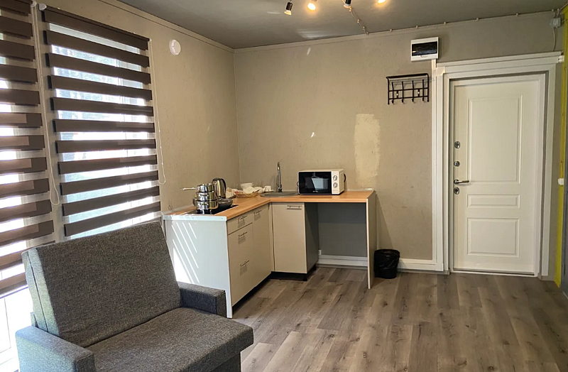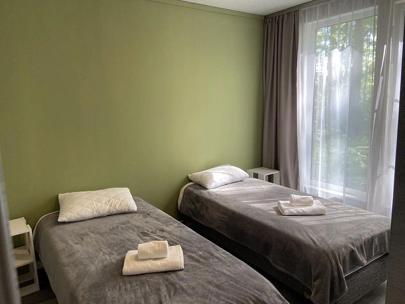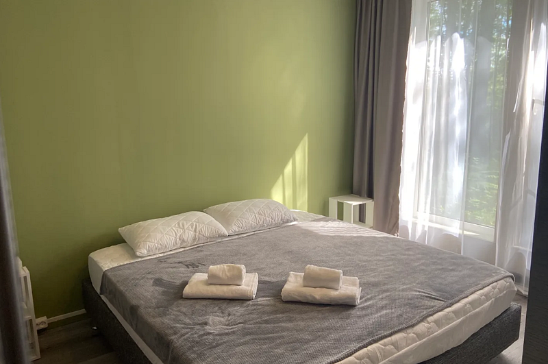 Номер-таунхаус на 4х человека с собственным санузлом и отдельным выходом на террасу. Постельное белье, полотенца и чайник предоставляются.