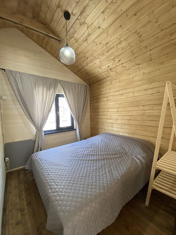 Барнхаус расположен в лесу у реки Соколка с видом на гору. В доме есть отдельная спальня, санузел, большая терраса с креслами, индивидуальная мангальная зона, вся необходимая кухонная посуда.