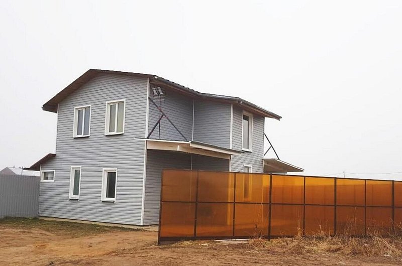 Большой новый комфортный дом с четырьмя спальнями и кухней-гостиной с диваном.