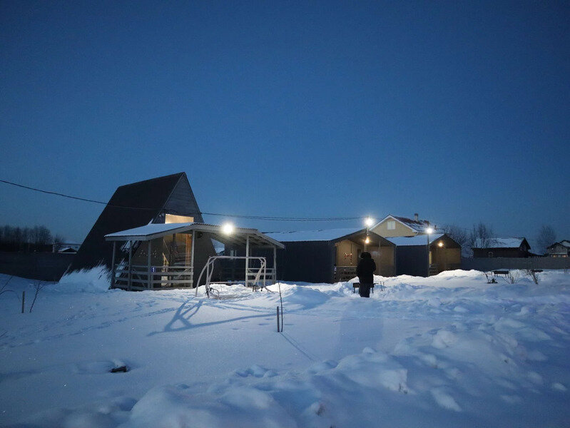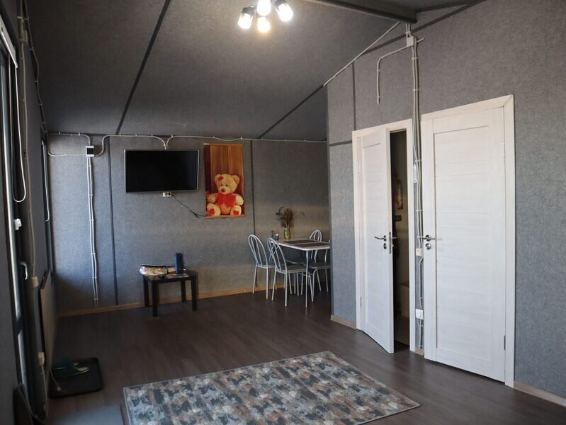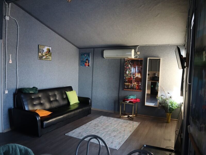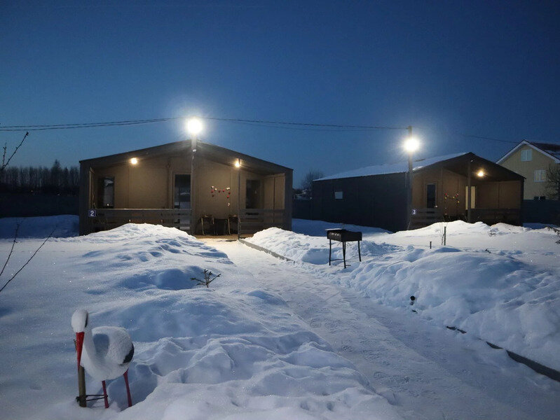 Для проживания гостей подготовлены уютные эко-домики, благоустроенные всем необходимым для комфортного проживания. В них вы найдете мягкую кровать или удобный раскладной диван. Индивидуальный санузел, расположенный в каждом доме, оснащен горячей водой и душем.