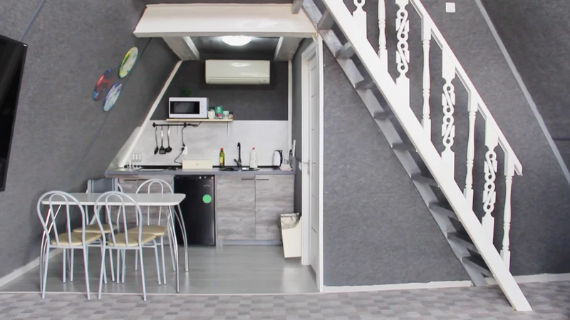 Кухни оборудованы бытовой техникой, чтобы гости смогли приготовить любимые блюда. Установлены холодильник, плита, микроволновая печь и электрочайник. Также есть набор посуды и обеденный стол.