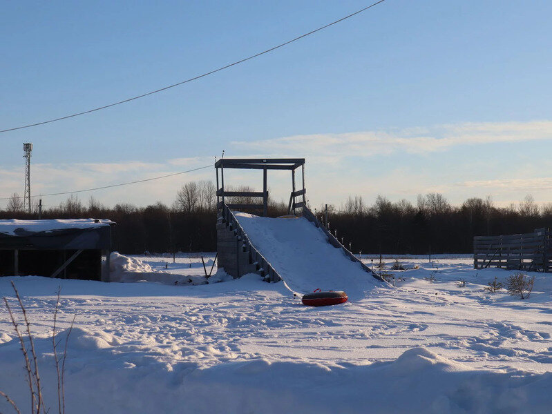 Скучать на ферме не придется, ведь можно будет познакомиться с животными в контактном зоопарке. Помимо этого, на территории имеется сауна, банный чан и детская площадка с батутом. Для автомобилей есть парковочные места.