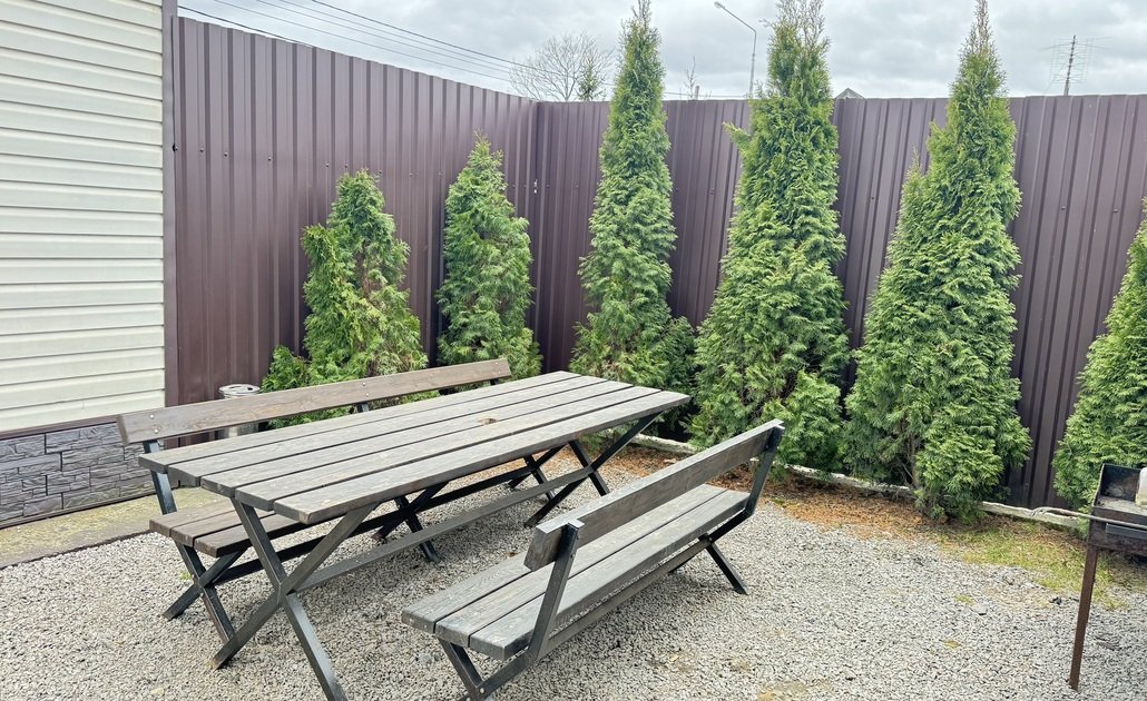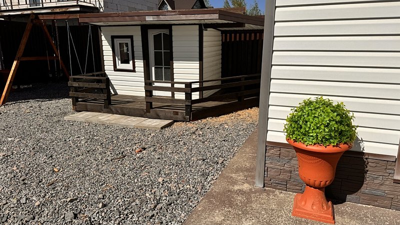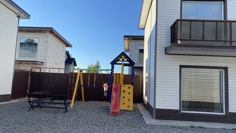 На территории есть охрана, детская площадка, зона барбекю, мангал и парковка для автомобилей.