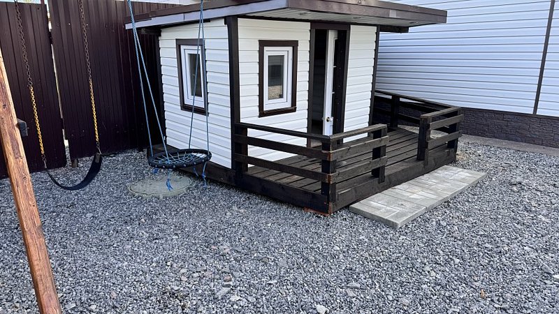 Особое внимание уделено маленьким путешественникам — для них создана игровая площадка в форме домика, где дети могут весело проводить время.