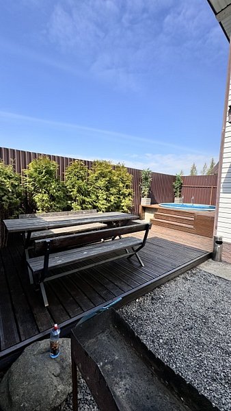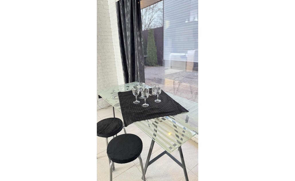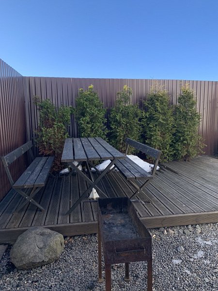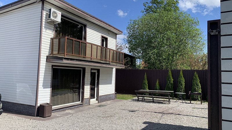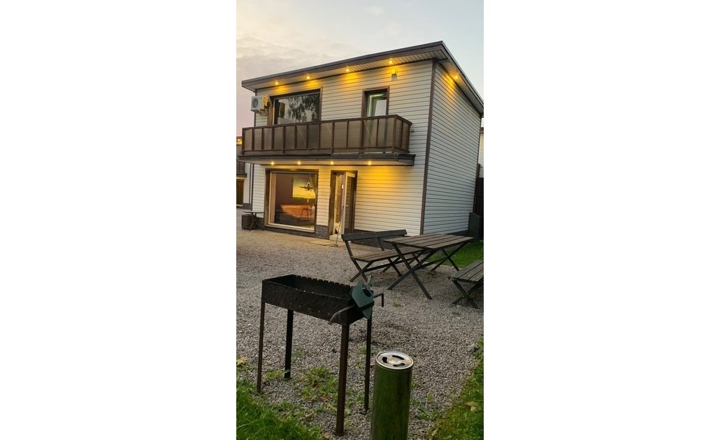 Короткий отпуск с друзьямиВыезд на шашлыкиОтдыхали компанией из 4 человек 8 июня. Заезд в 14 часов, приехали раньше, разрешили бросить вещи , коттедж ещё убирался . Поехали гулять в Петергоф. Вернулись. Коттедж был убран. Мы жили в Белом доме. Одна спальня с кроватью и 2 разборных дивана на 1 и 2 этаже. Возле дома мангал, скамейка. Сам коттедж оформлен очень стильно. Зеркальный чёрный потолок придаёт объём. Есть барная стойка , но только 2 барных стула, плита, холодильник, посудомоечная машина, стиральная машина, микроволновка. Отдых понравился . Пожелания : хотелось бы больше посуды , были разнокалиберные бокалы и фужеры . И больше бы зелени на территории. Ну и как повезёт с соседями. Все оказались меломанами и из каждой машины гремела своя музыка . Но это минус не хозяином коттеджей , а постояльцам. К сожалению, беспардонство и неуважение к соседям прогрессирует. Перед началом вселениям предупредили , что шуметь на улице только до 23. К сожалению соседи этого не придерживались. Звонок хозяину эту проблему решил. С погодой повезло, стояла жара, шашлык удался. Отдохнули и на следующий день выехали в 12 под начавшийся дождь. В целом место интересное.