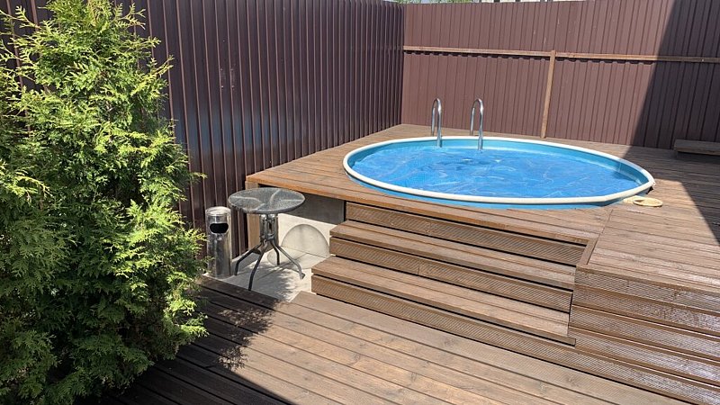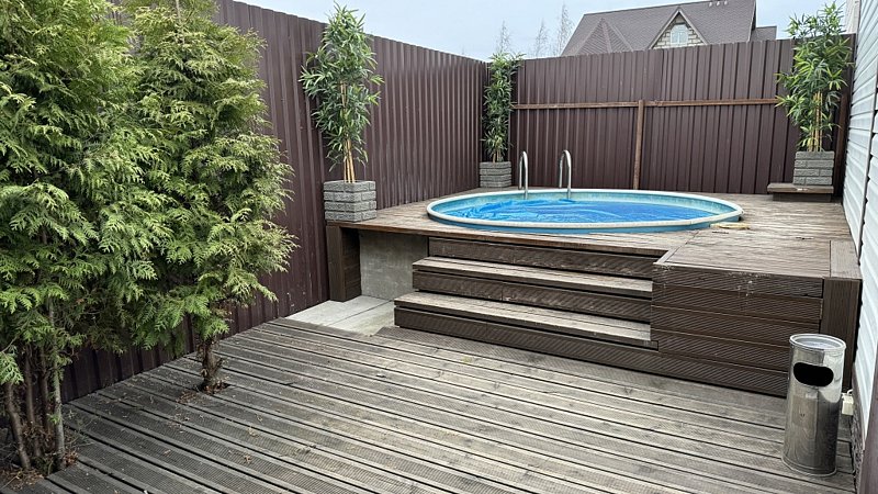 Зимний двухэтажный дом площадью 65 м² с теплым бассейном. Круглый год в бассейне поддерживается температура 25-27 градусов.