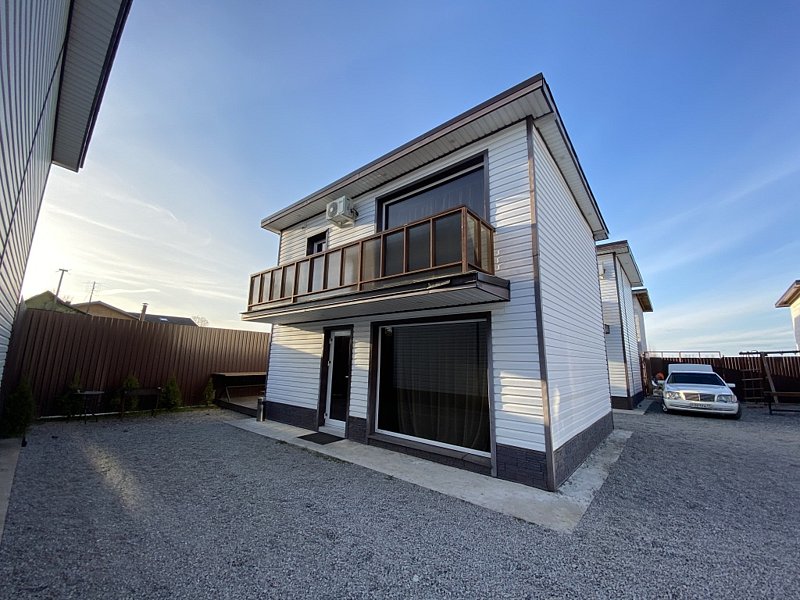Дом 65 м2 с большими панорамными окнами и большим балконом, с которого открывается великолепный вид на закат. Везде теплый пол, дом полностью оборудован всей мебелью и техникой.