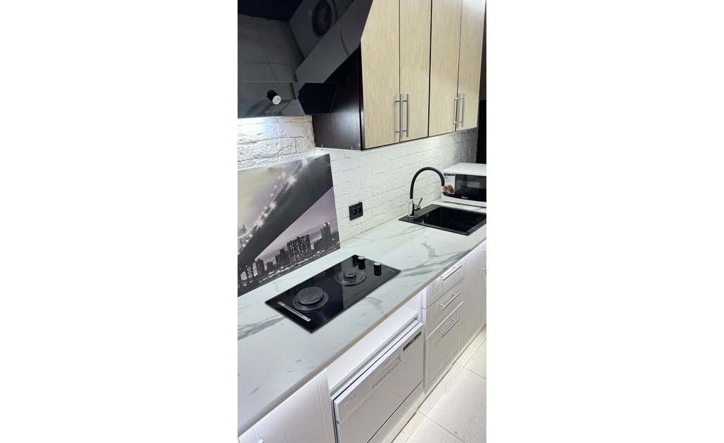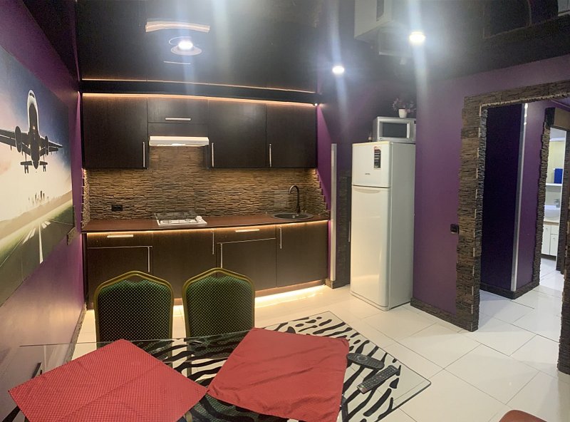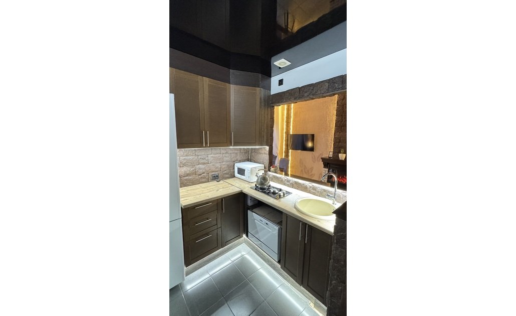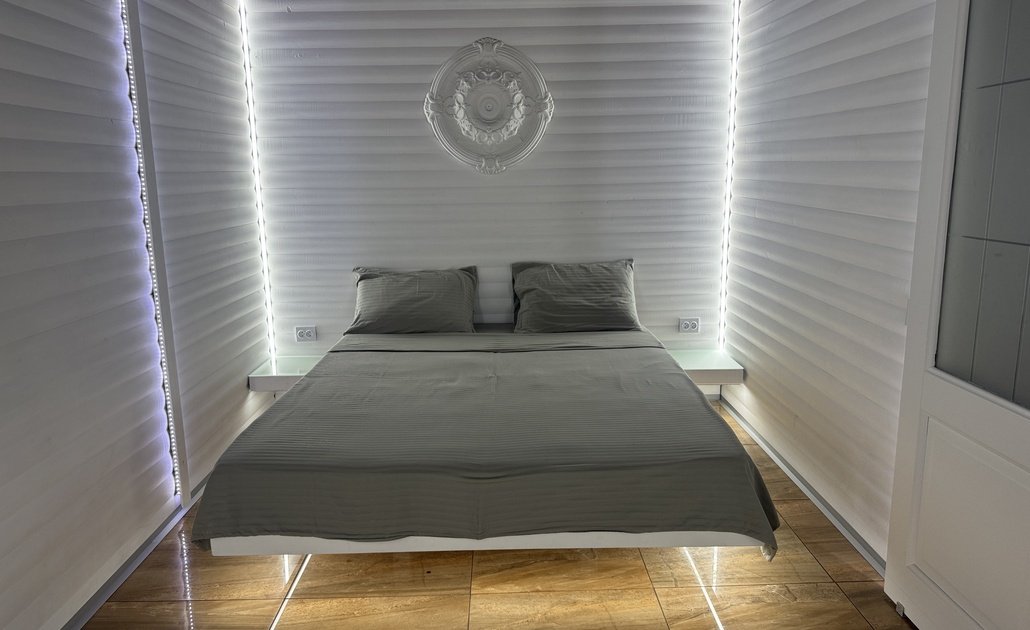 Просторная кровать размером 160/200 и раскладной диван 140/200, встроенная кухня, укомплектованная мебелью, техникой и посудой. Здесь есть все необходимое для комфорта: теплые полы, электрический камин, посудомоечная и стиральная машины, большой холодильник, кондиционер, два плазменных телевизора, второй свет, изящный балкон, Wi-Fi, премиальное постельное белье, полотенца, одноразовые тапочки и гигиенические принадлежности.