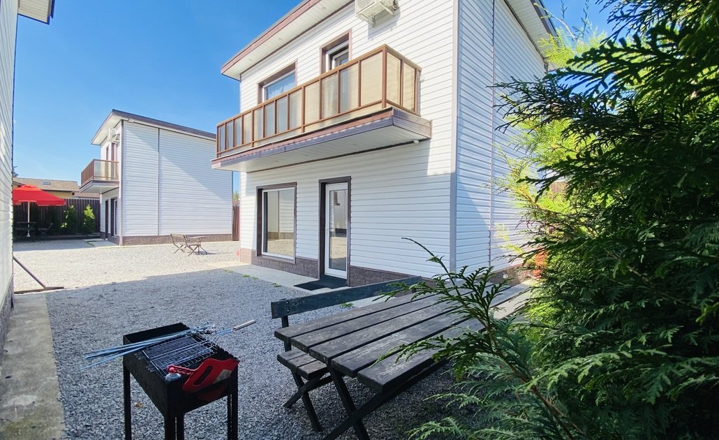 Две спальни, гостиная, кухня, санузел с душевой кабиной, у дома зона барбекю и парковка. Охрана, закрытая территория.