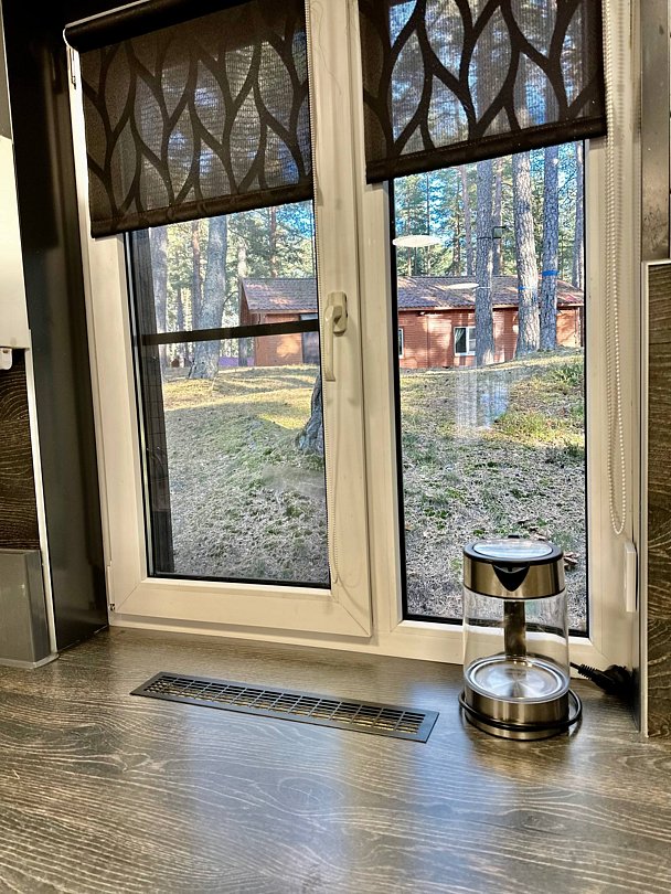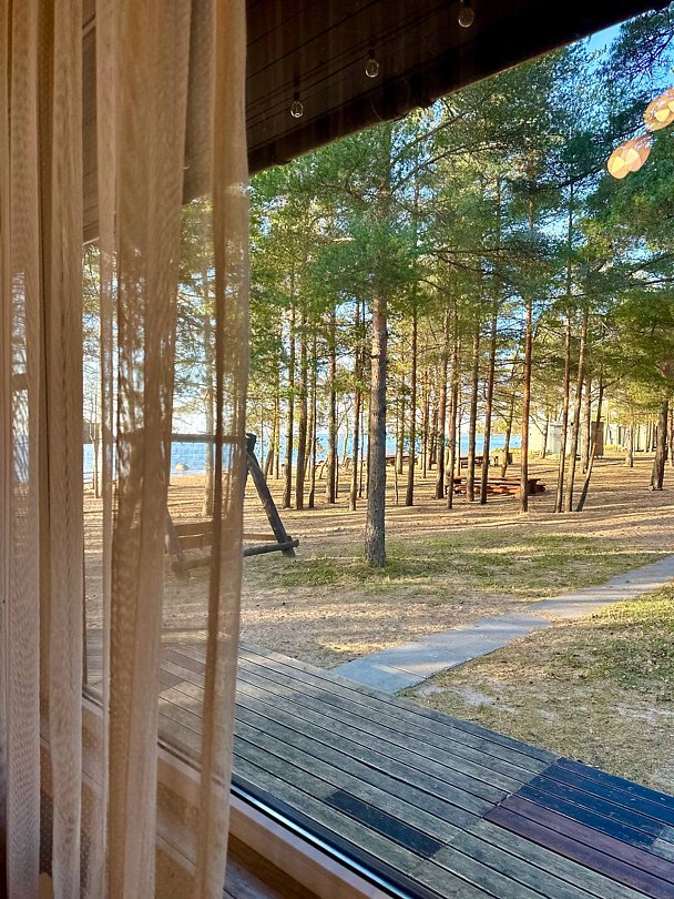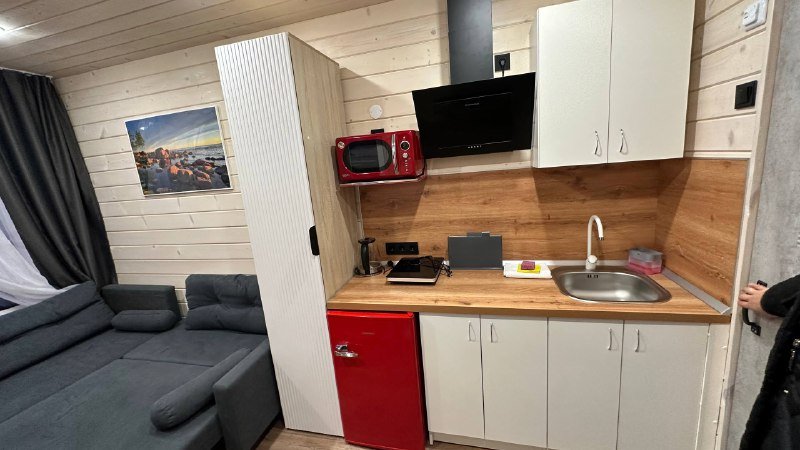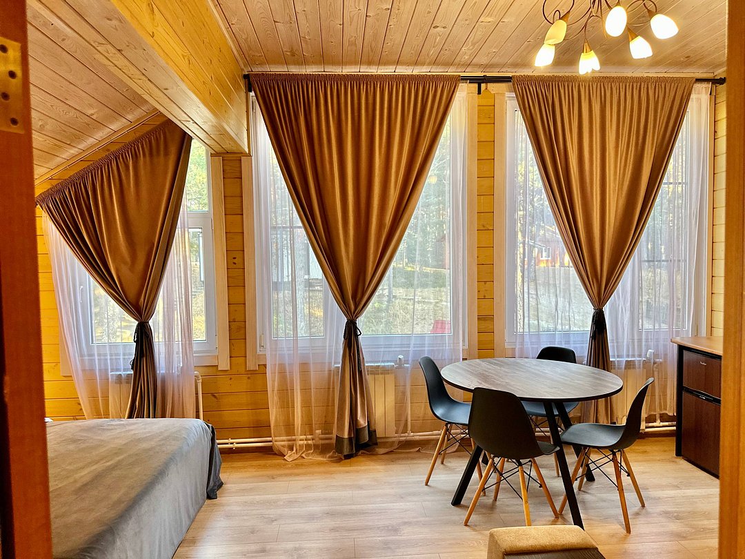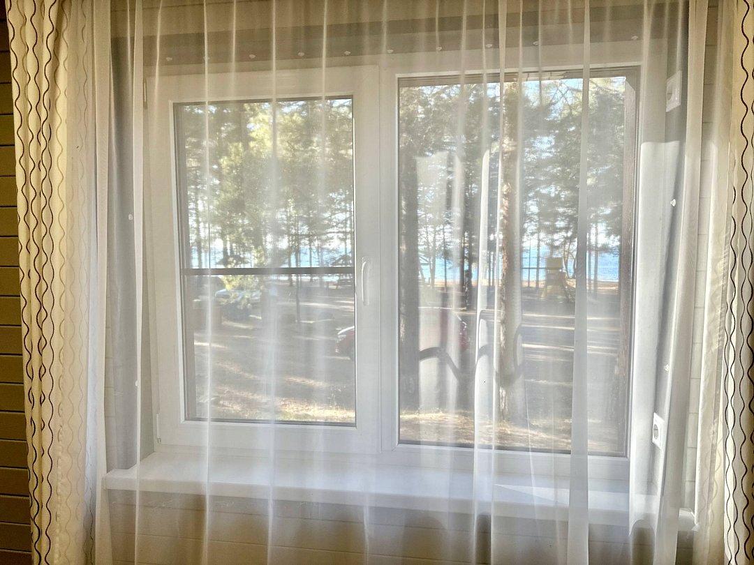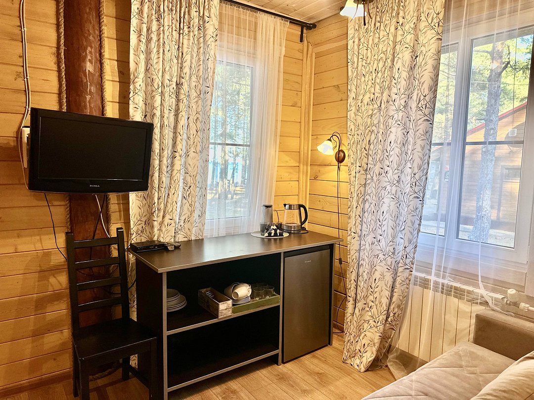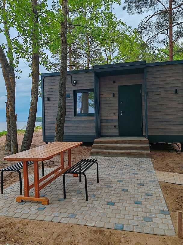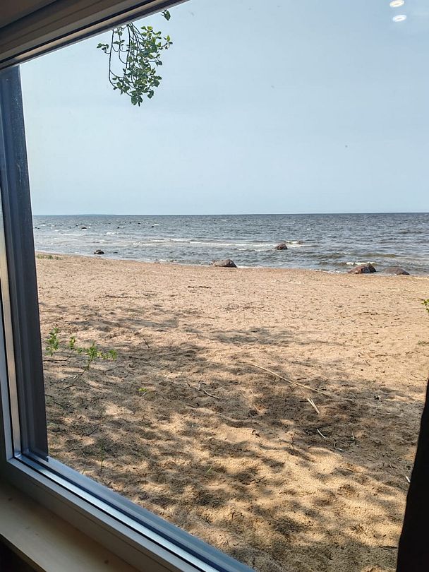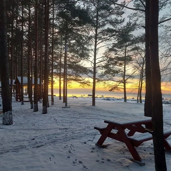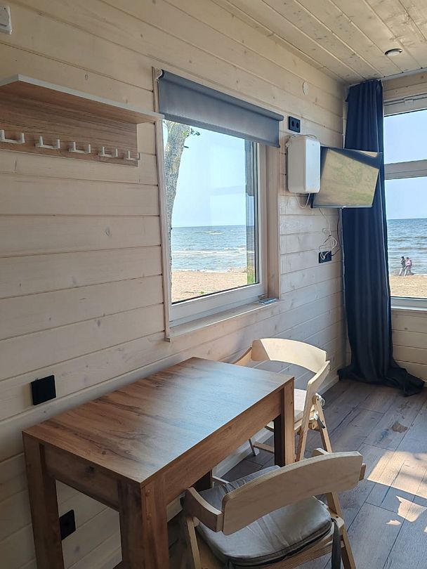 Уютный коттедж «Закат» на первой береговой линии финского залива с панорамным окном. Для двоих. Спальная и кухонная зоны, отдельный санузел с душем.