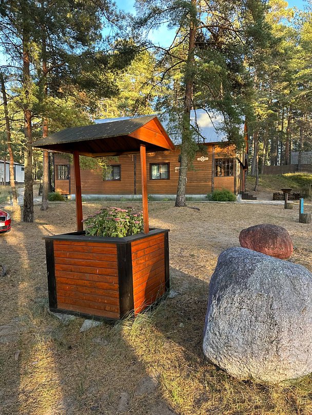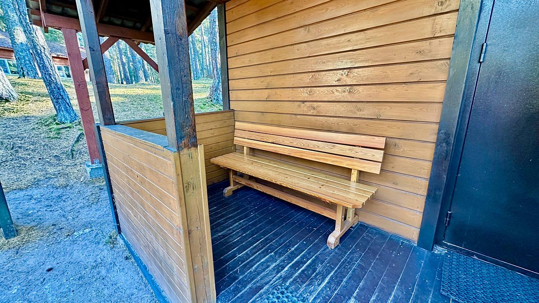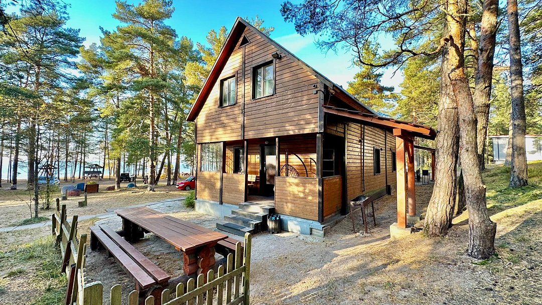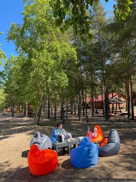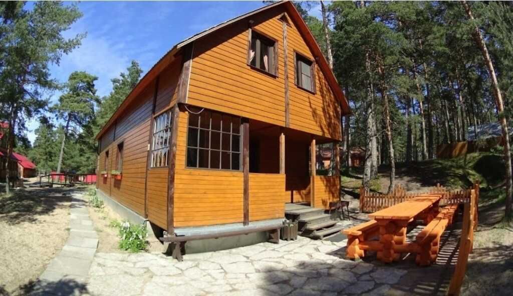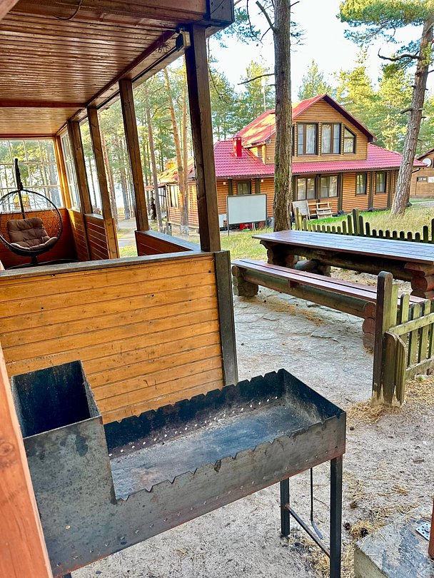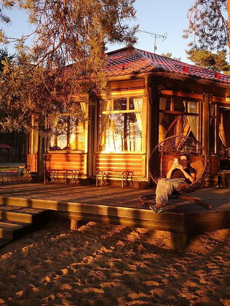 Семейный отдыхДостоинстваЗдесь домики-срубы из древесины, есть душ и туалет, кровать мягкая и большая, по телевизору показывают все каналы. Но телевизор смотреть некогда, на территории есть места для занятий спортом и спортивных игр, у каждого домика стоит стол или беседка - зона барбекю, мангалы бесплатные. Запах хвои и леса улучшает самочувствие.