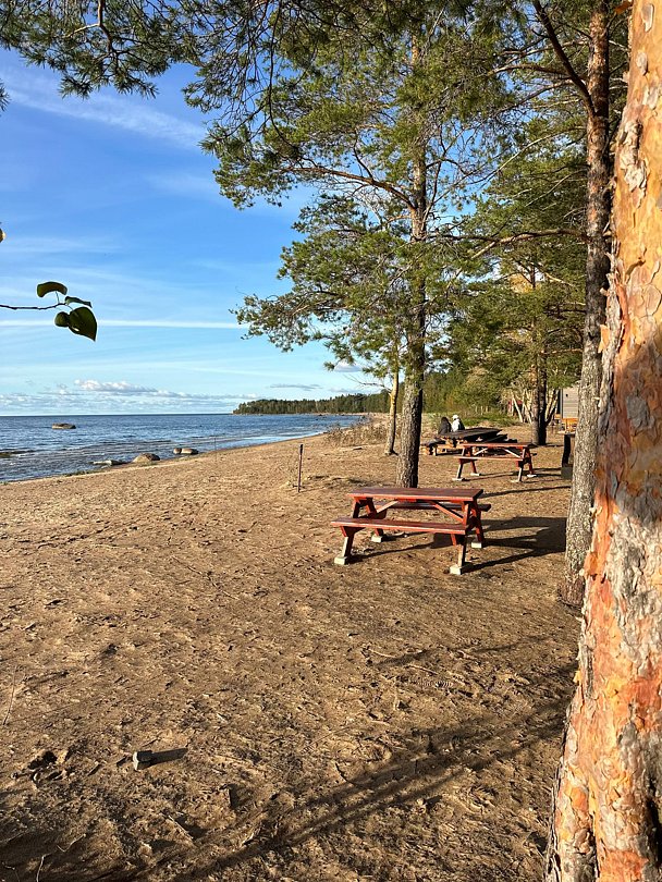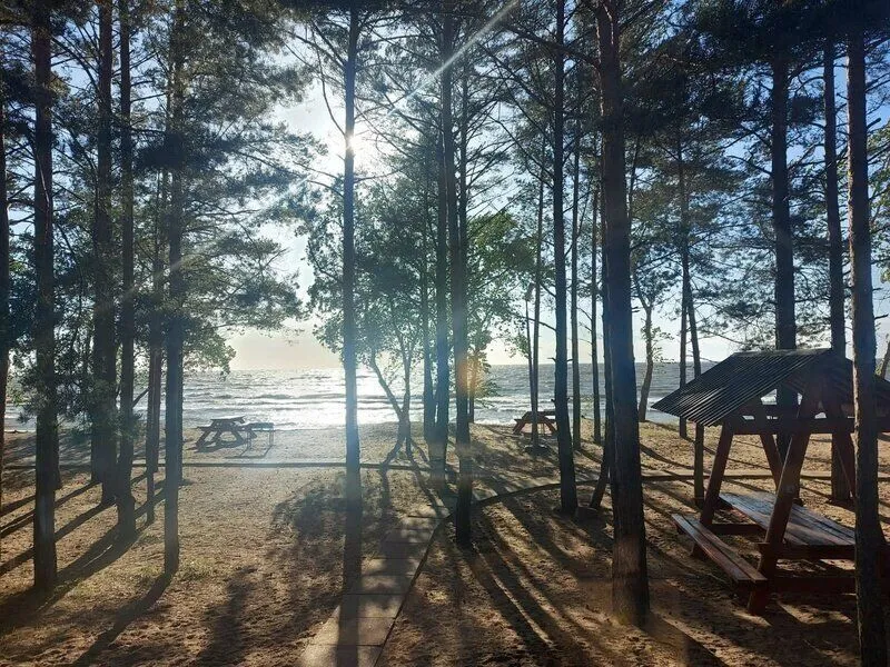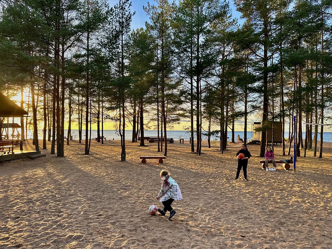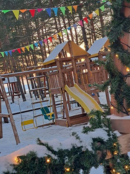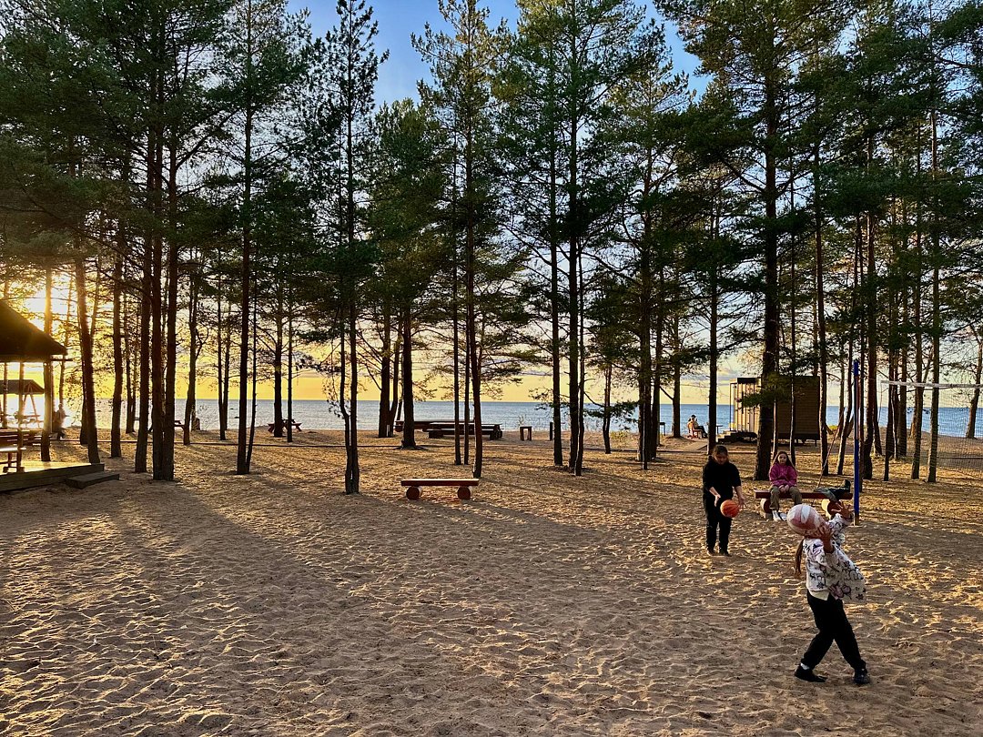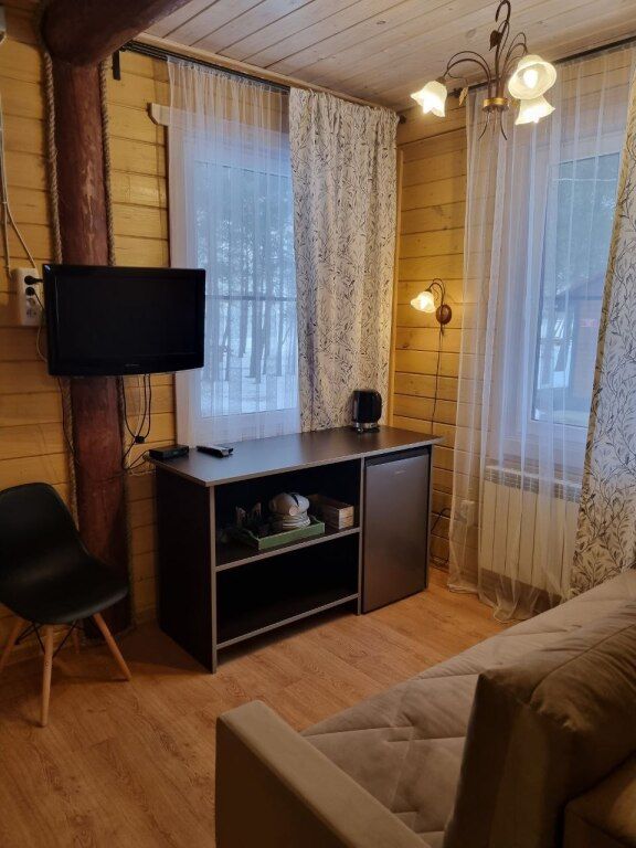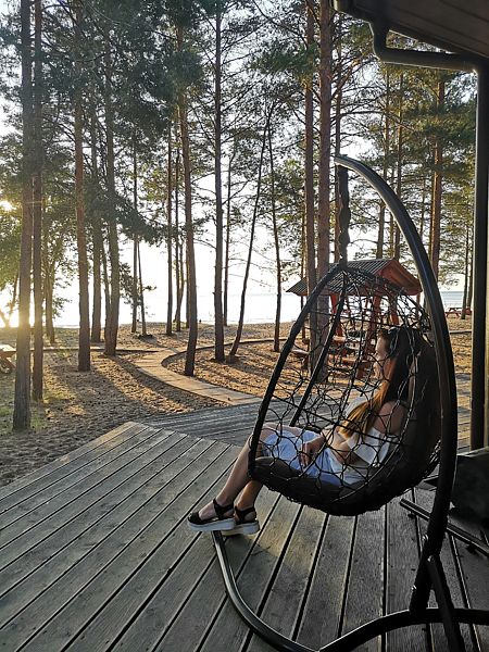 Семейный отдыхДостоинстваЗдесь домики-срубы из древесины, есть душ и туалет, кровать мягкая и большая, по телевизору показывают все каналы. Но телевизор смотреть некогда, на территории есть места для занятий спортом и спортивных игр, у каждого домика стоит стол или беседка - зона барбекю, мангалы бесплатные. Запах хвои и леса улучшает самочувствие.