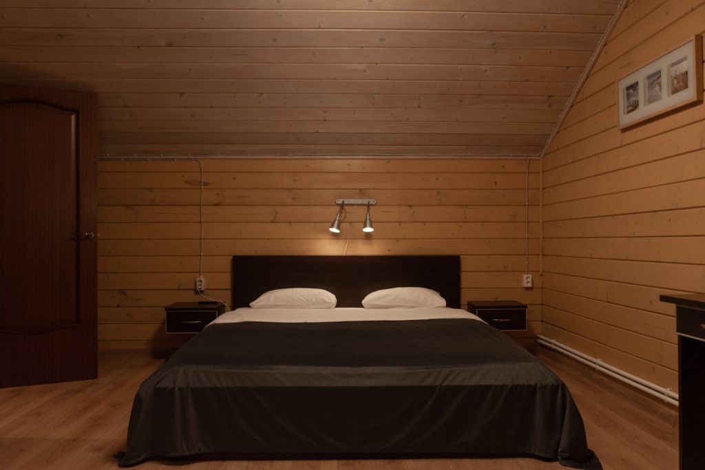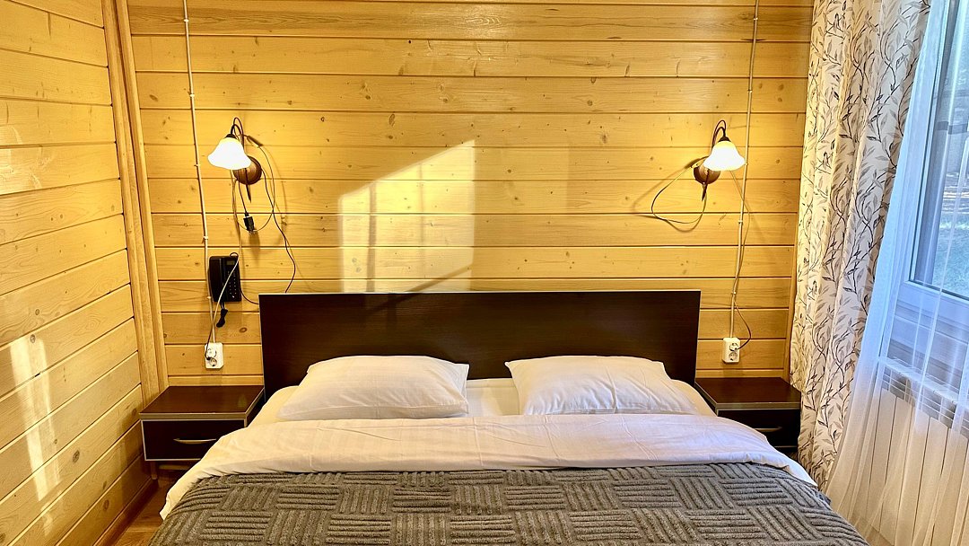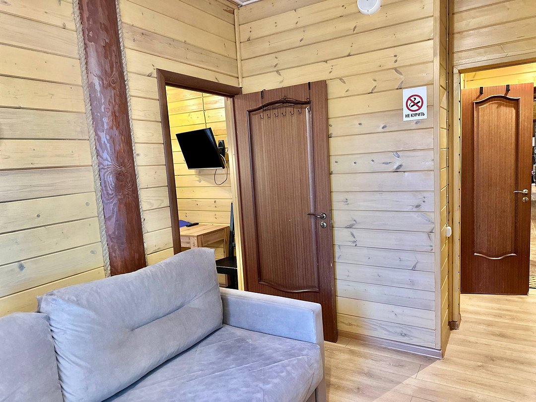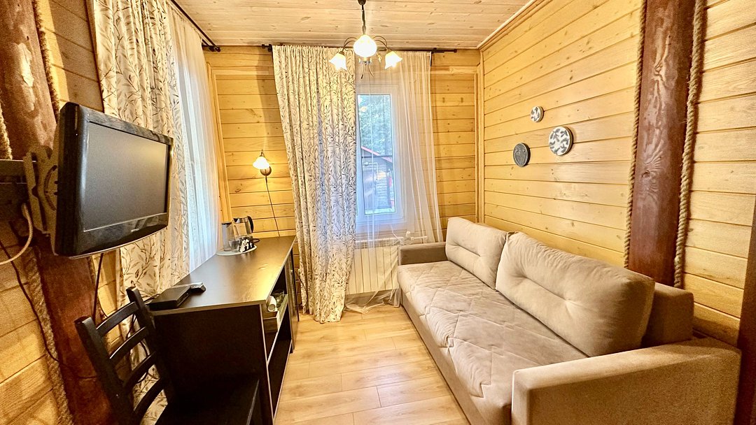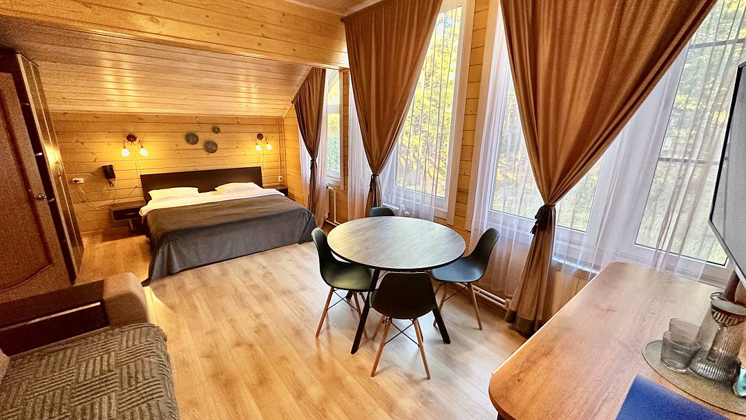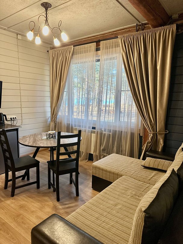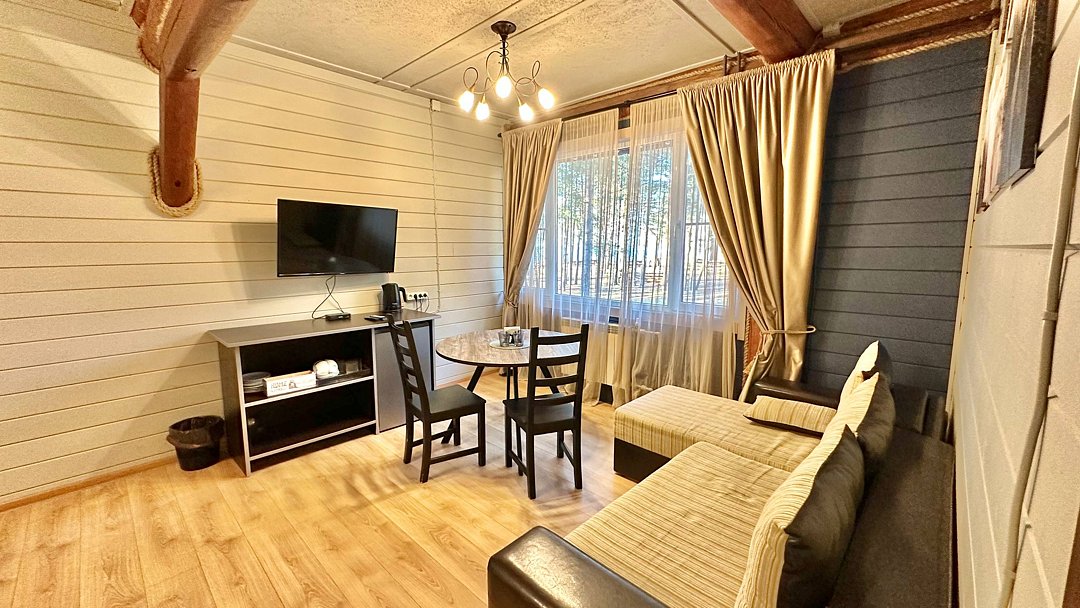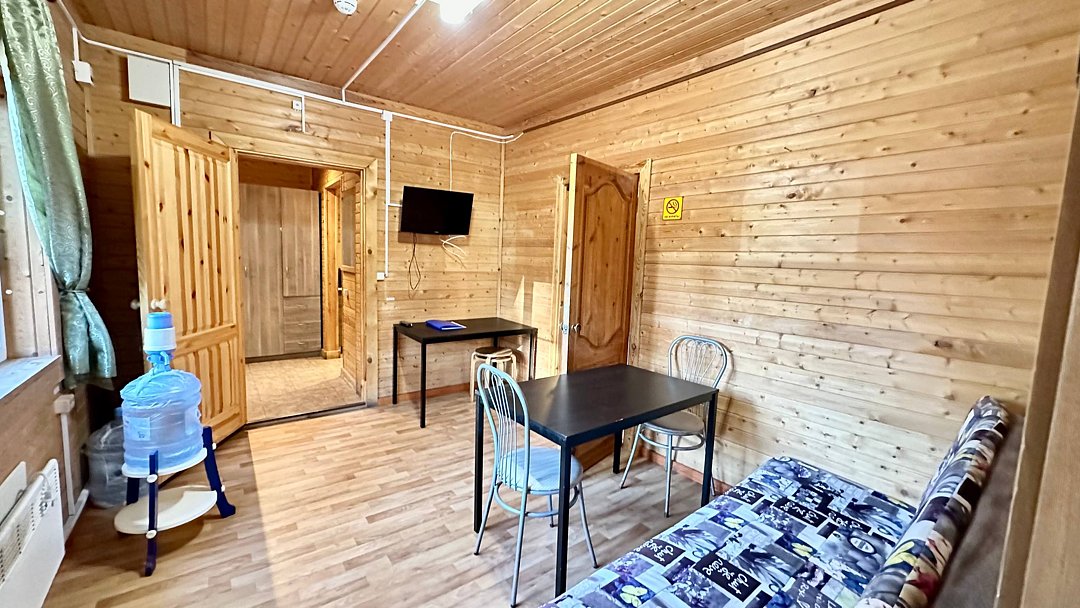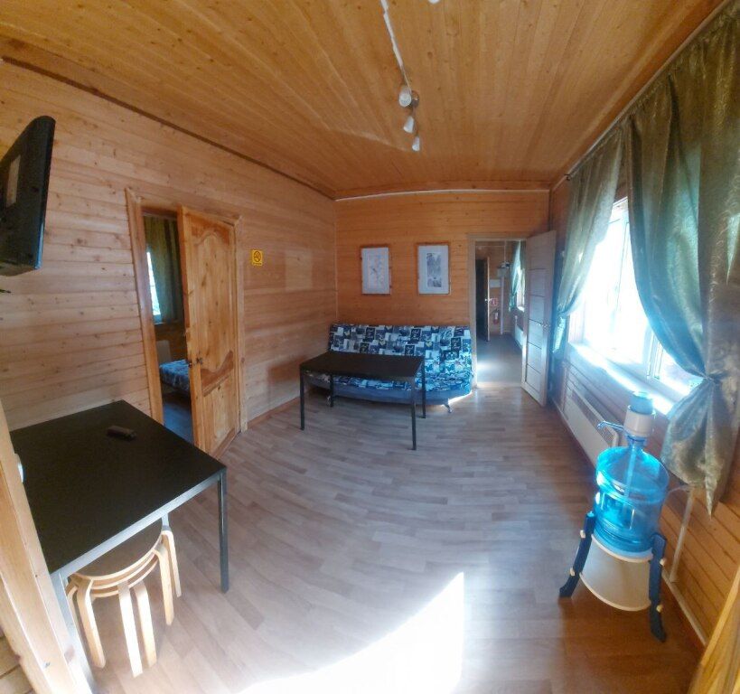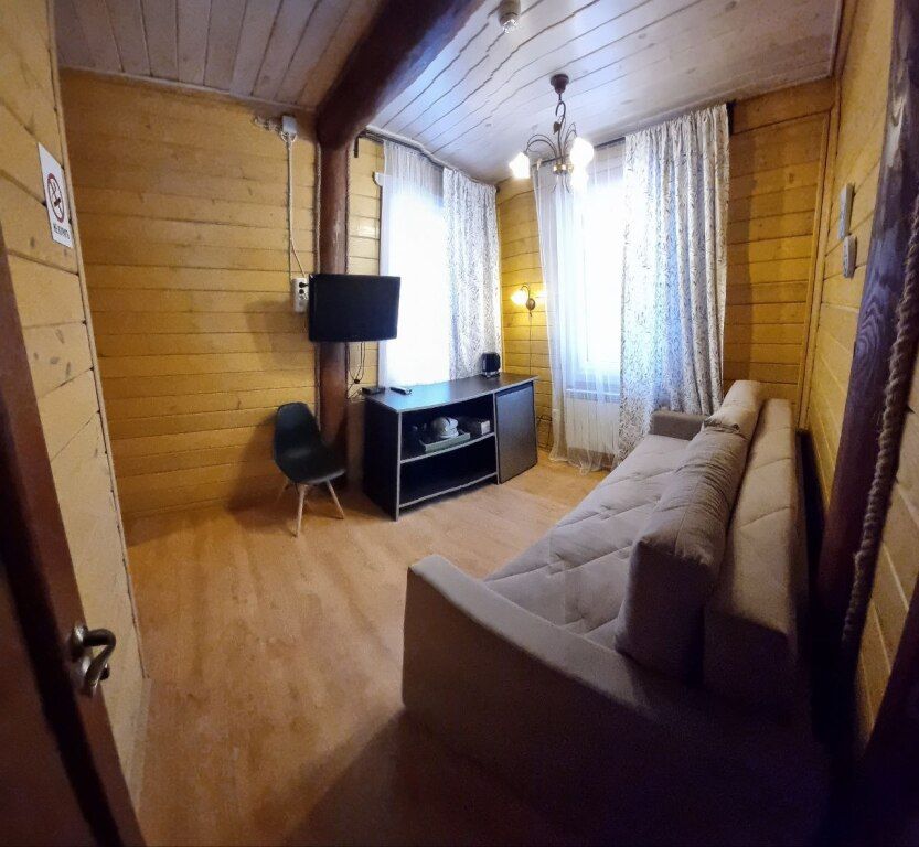 Уютный номер на двух человек (+ 2 дополнительных места). В номере есть: 2-х спальная кровать, 2-х спальный диван, ЖК телевизор, холодильник, санитарный узел, душ, горячая и холодная вода, чайник, постельное бельё, полотенца, фен.