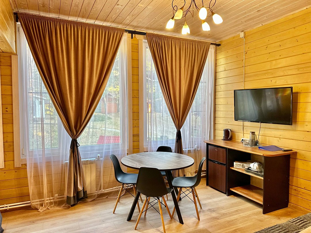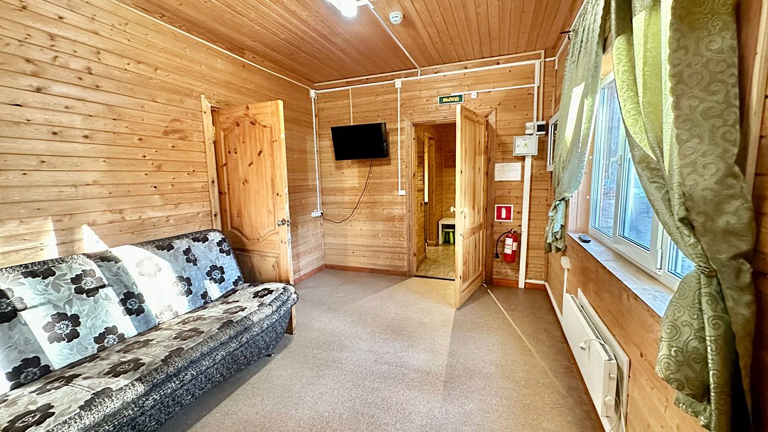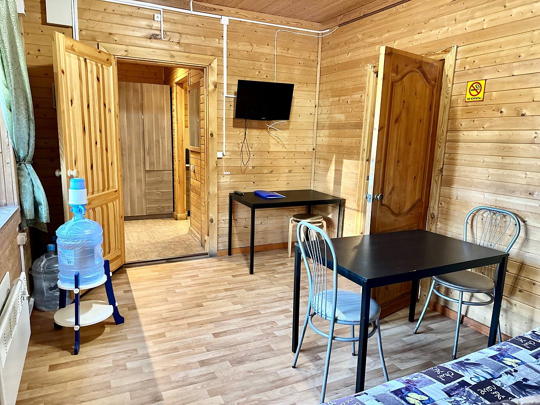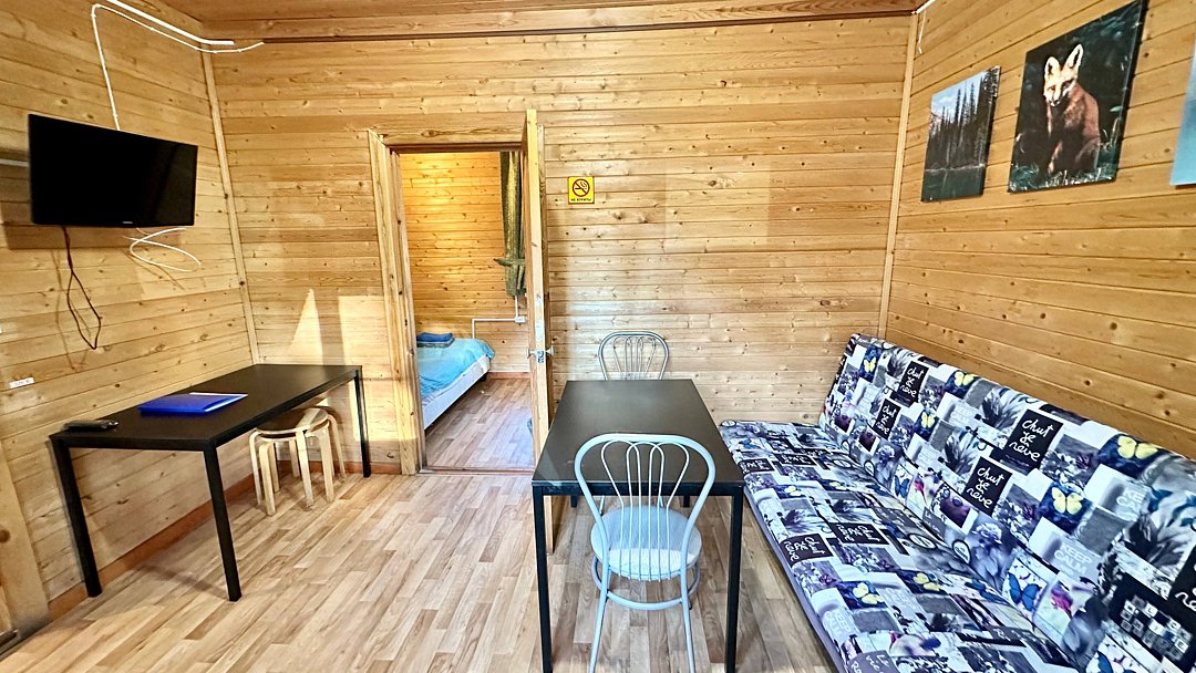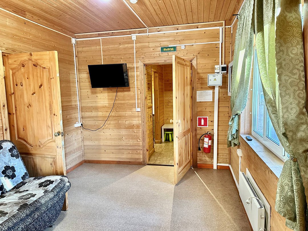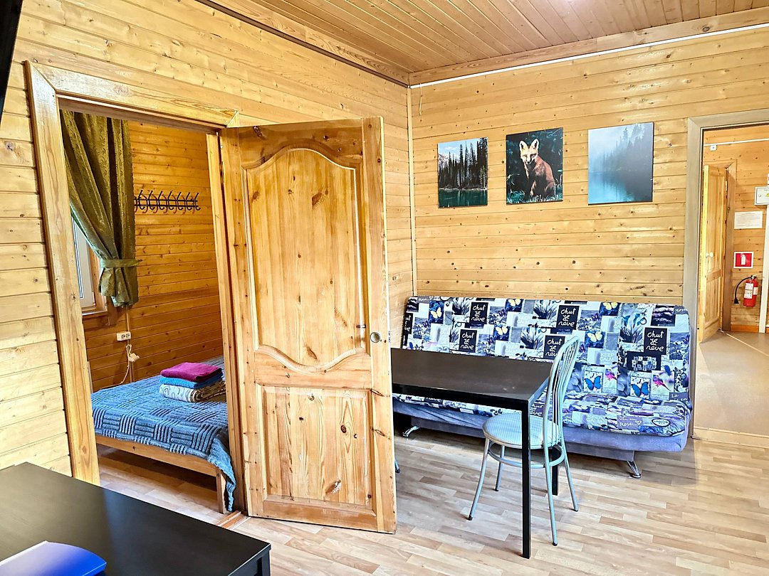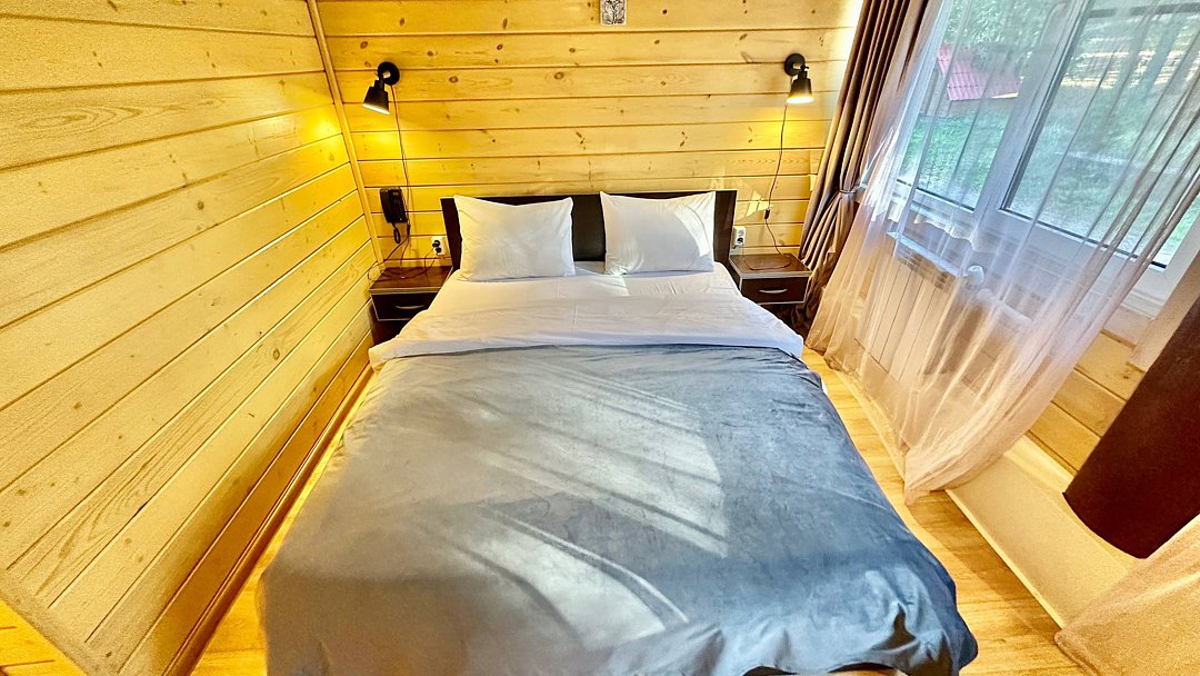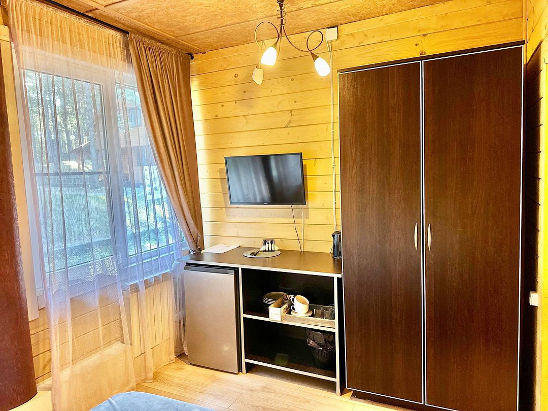 Уютный номер на двух человек (+ 2 дополнительных места). В номере есть: 2-х спальная кровать, 2-х спальный диван, ЖК телевизор, холодильник, санитарный узел, душ, горячая и холодная вода, чайник, постельное бельё, полотенца, фен.