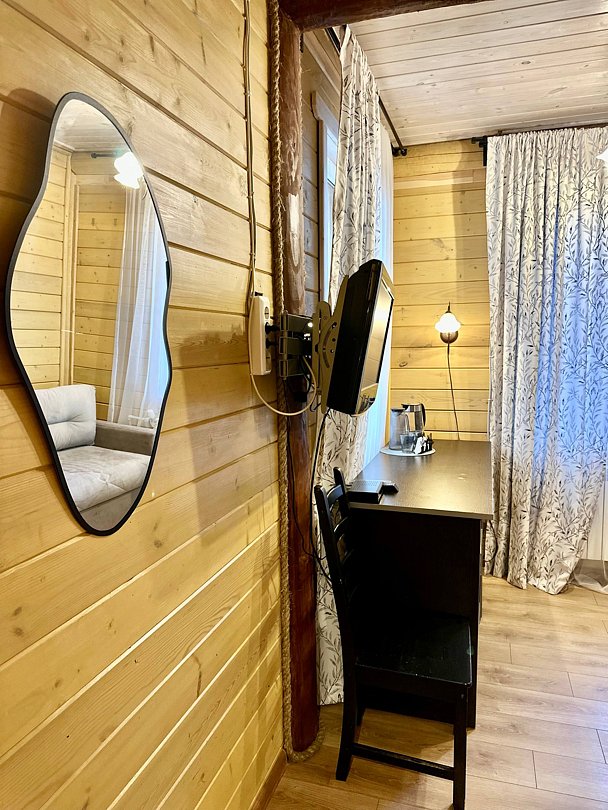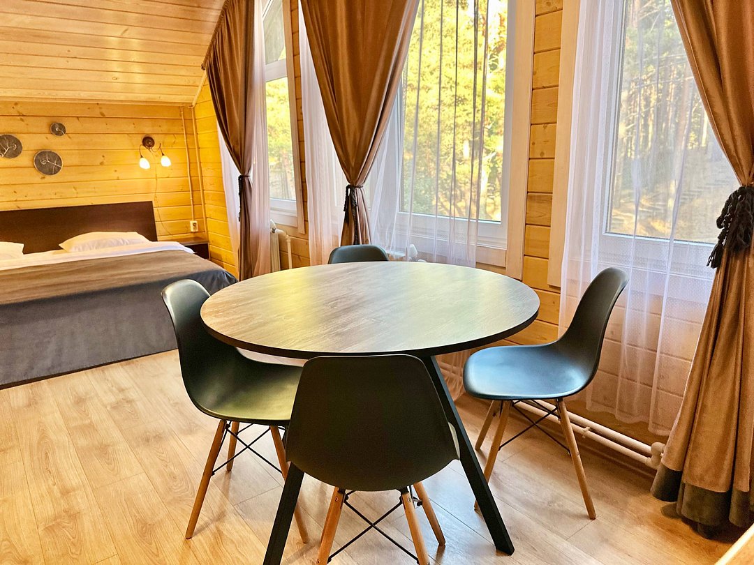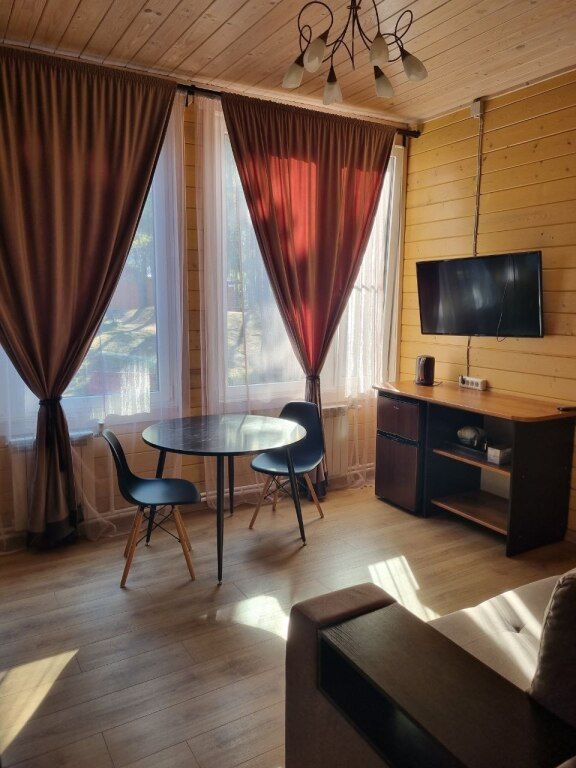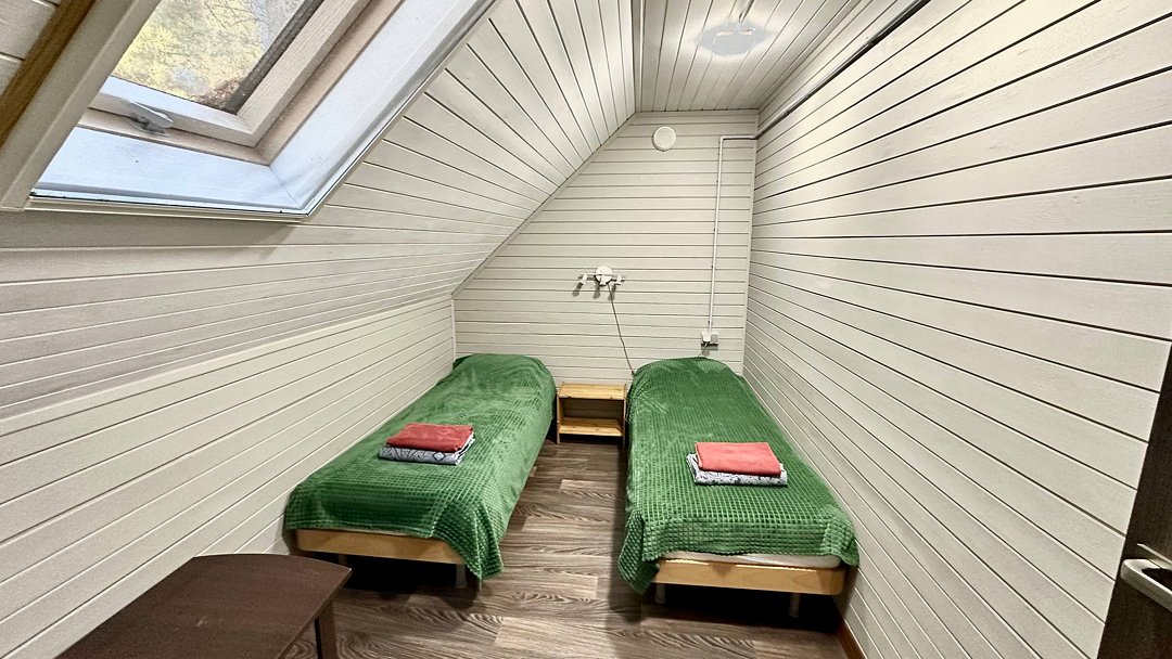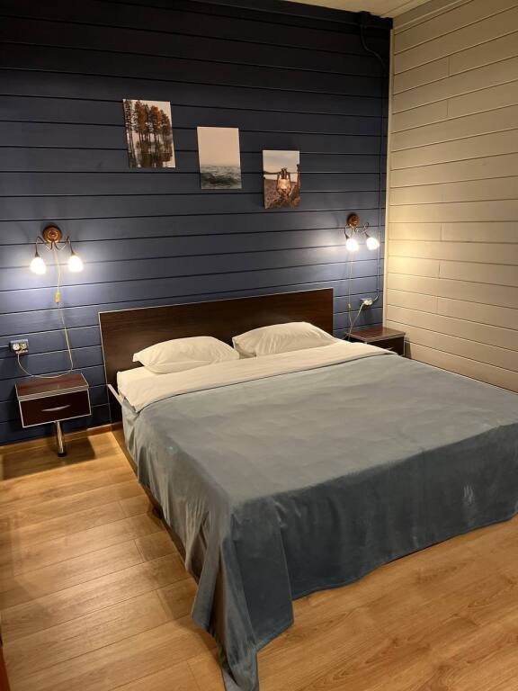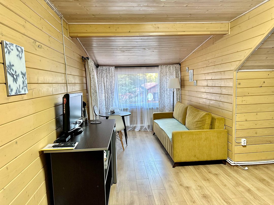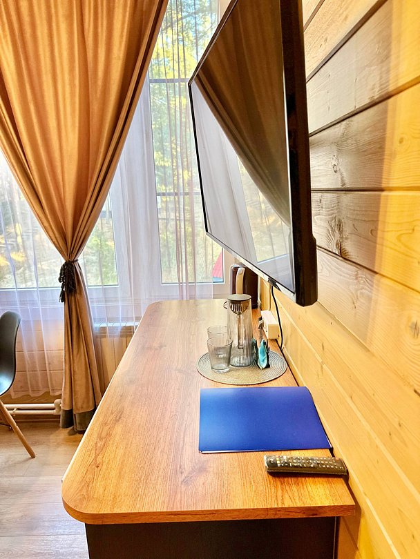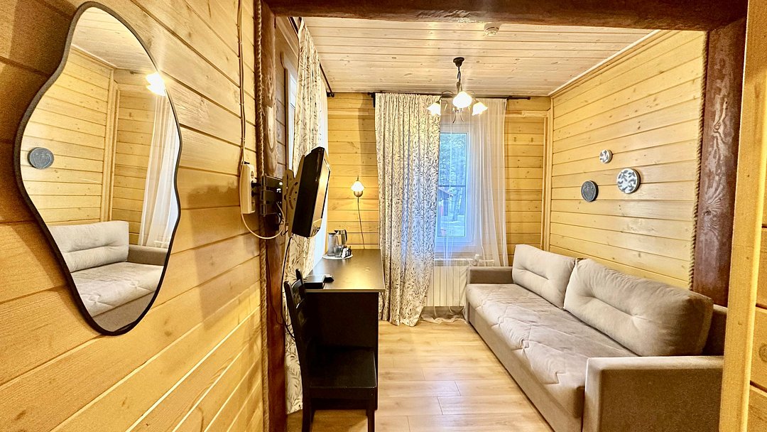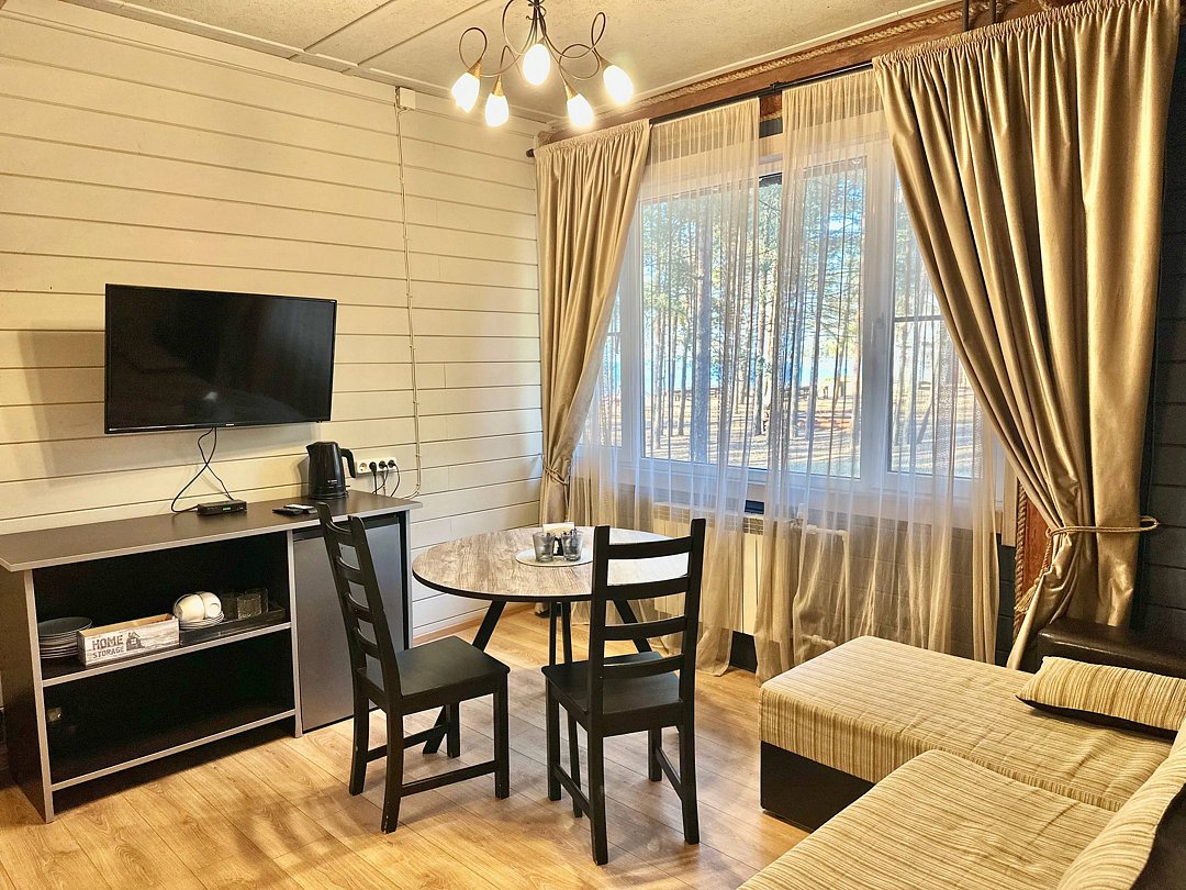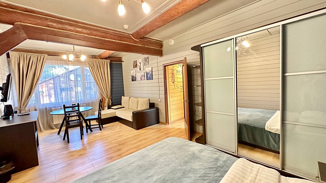 Уютный номер на двух человек (+ 2 дополнительных места). В номере есть: 2-х спальная кровать, 2-х спальный диван, ЖК телевизор, холодильник, санитарный узел, душ, горячая и холодная вода, чайник, постельное бельё, полотенца, фен.